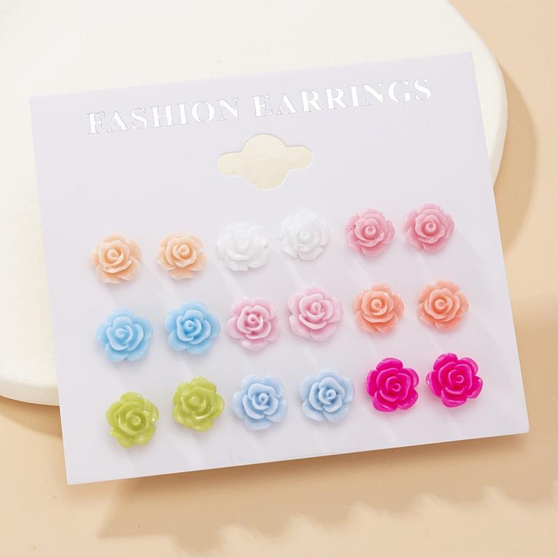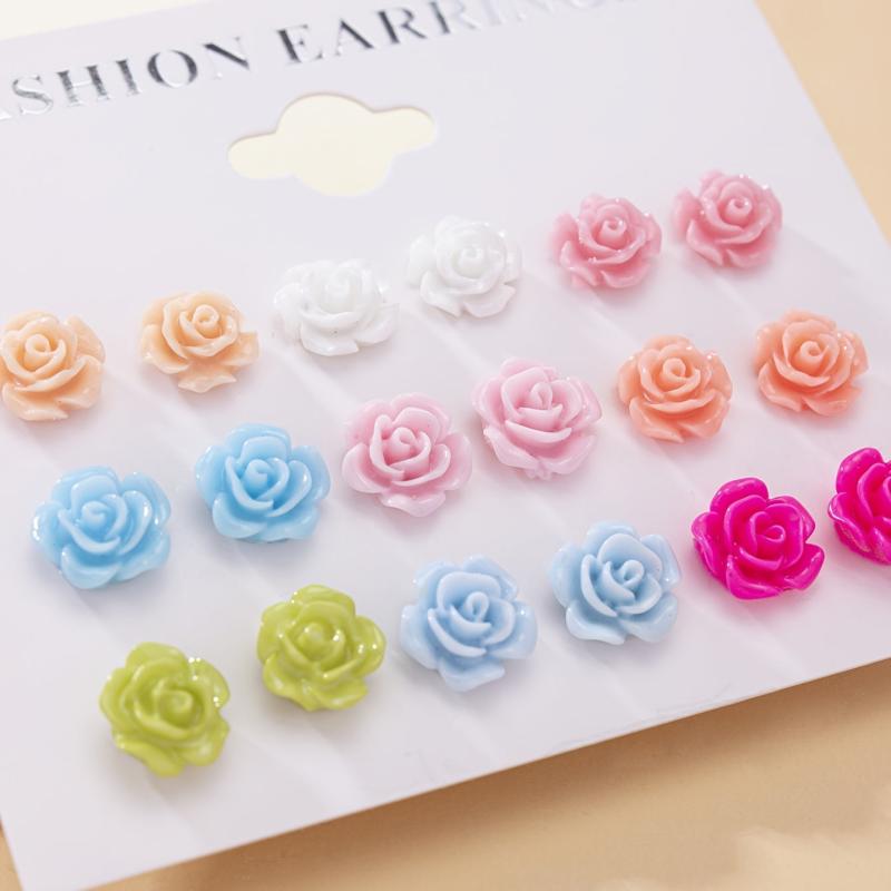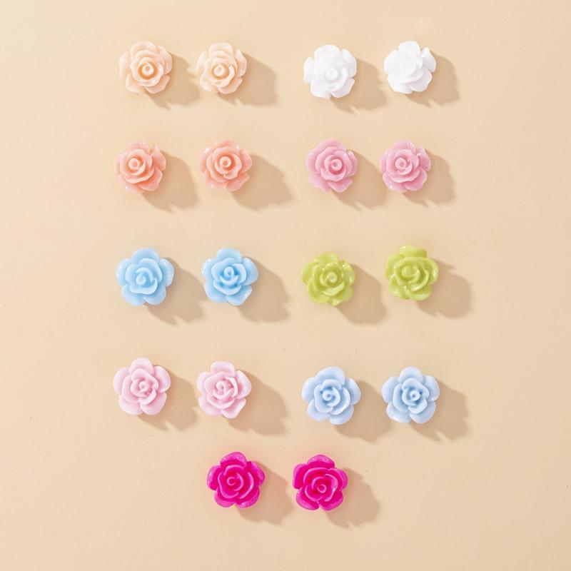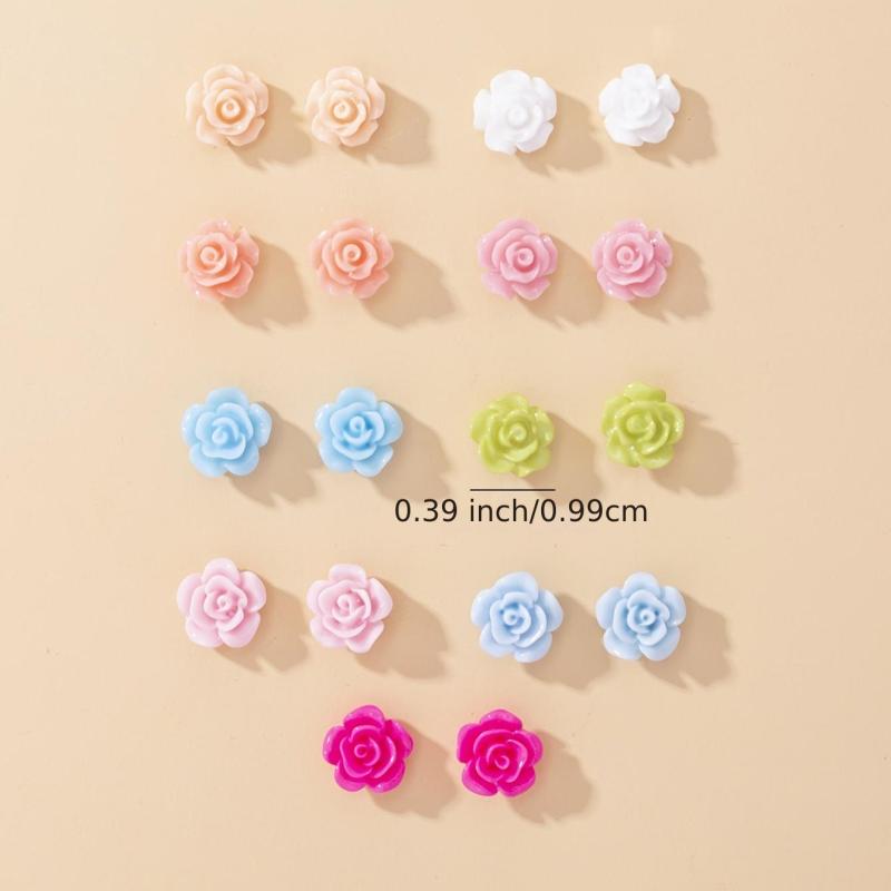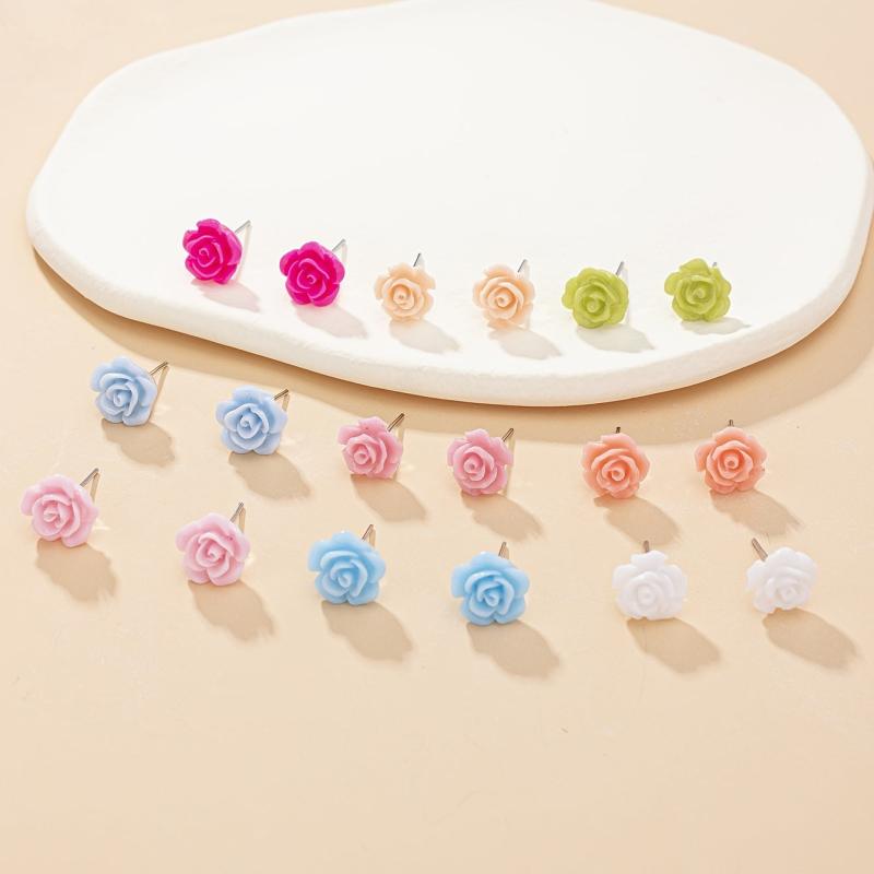 Plastic flower earrings set perfect for daily wear and various occasions. A colorful addition to your accessory collection.