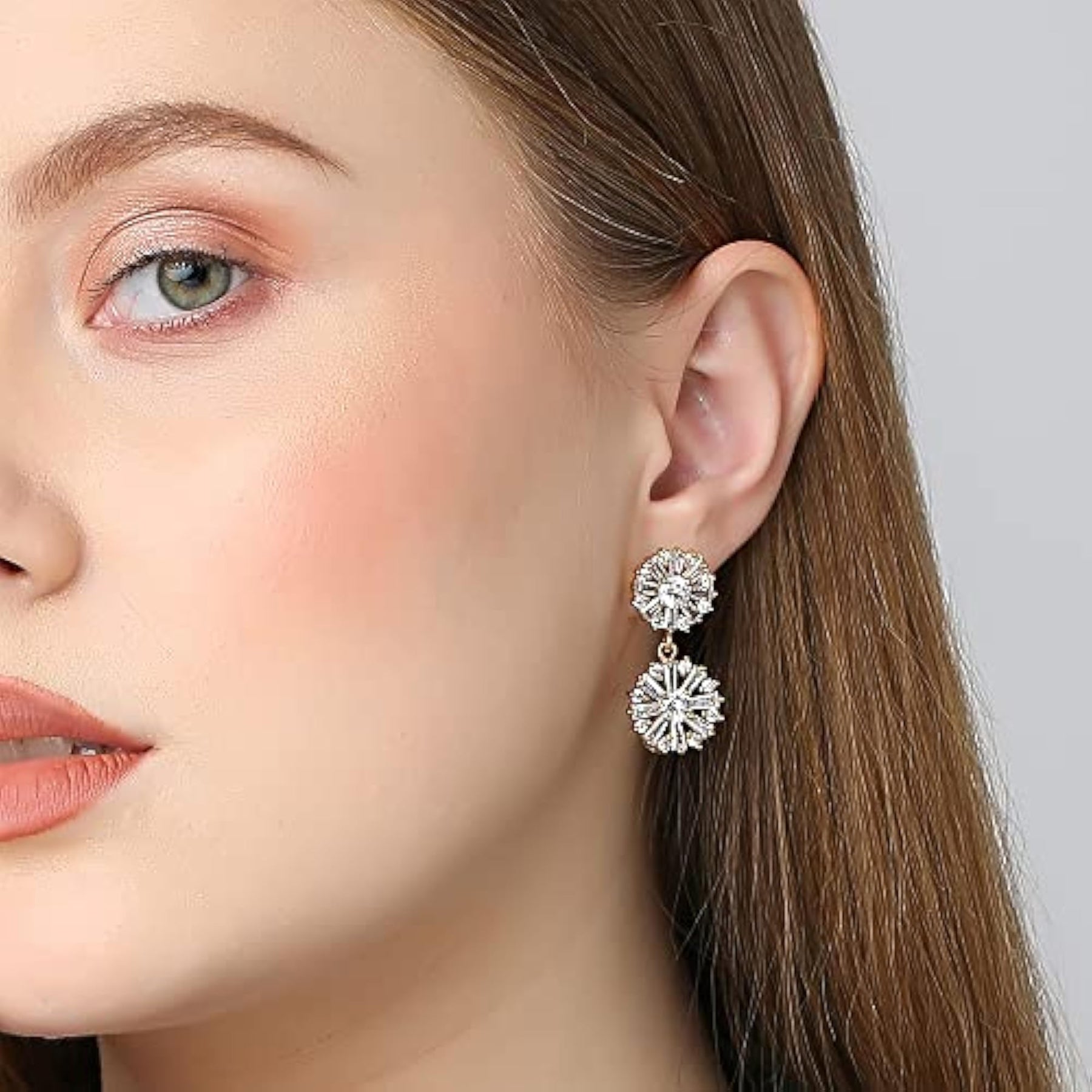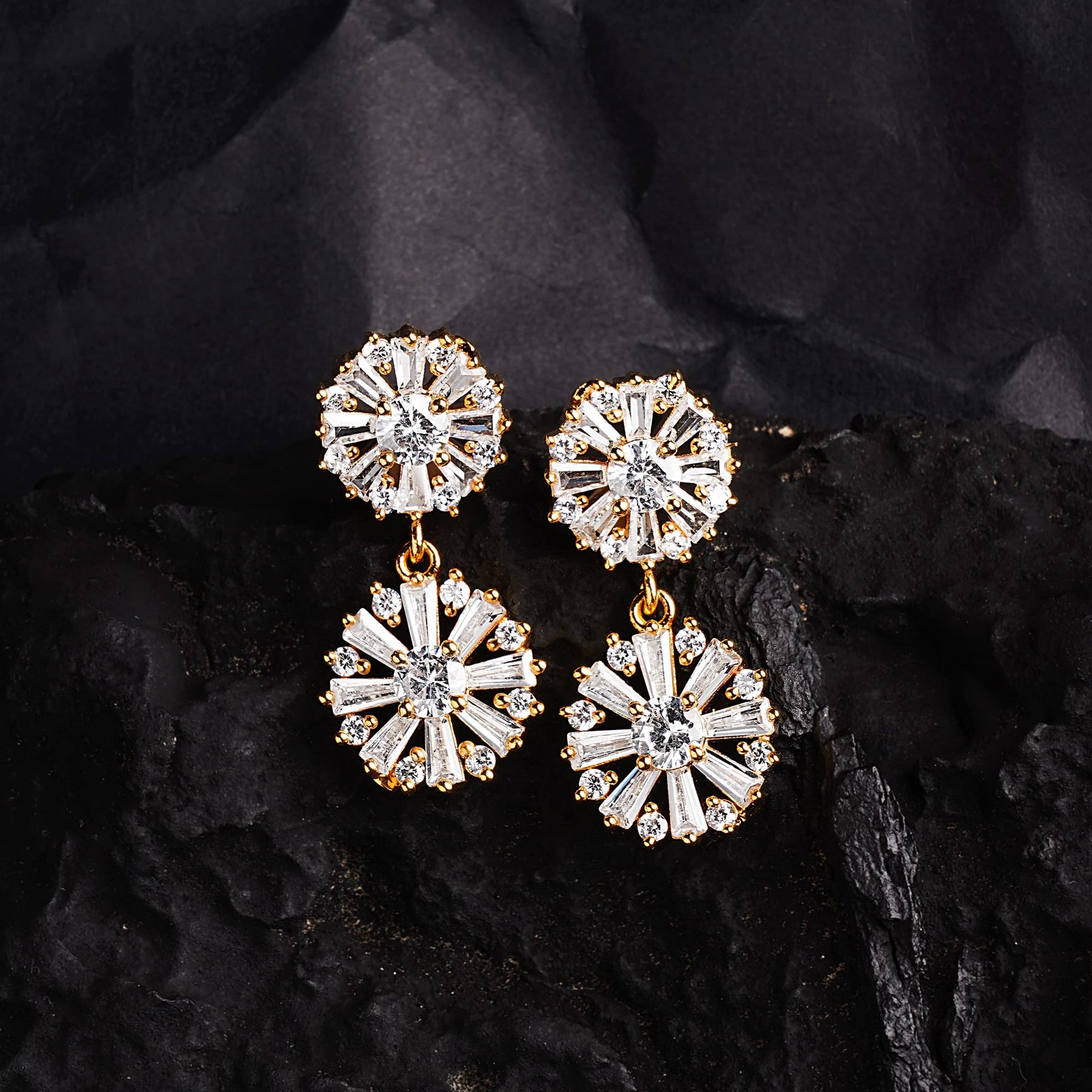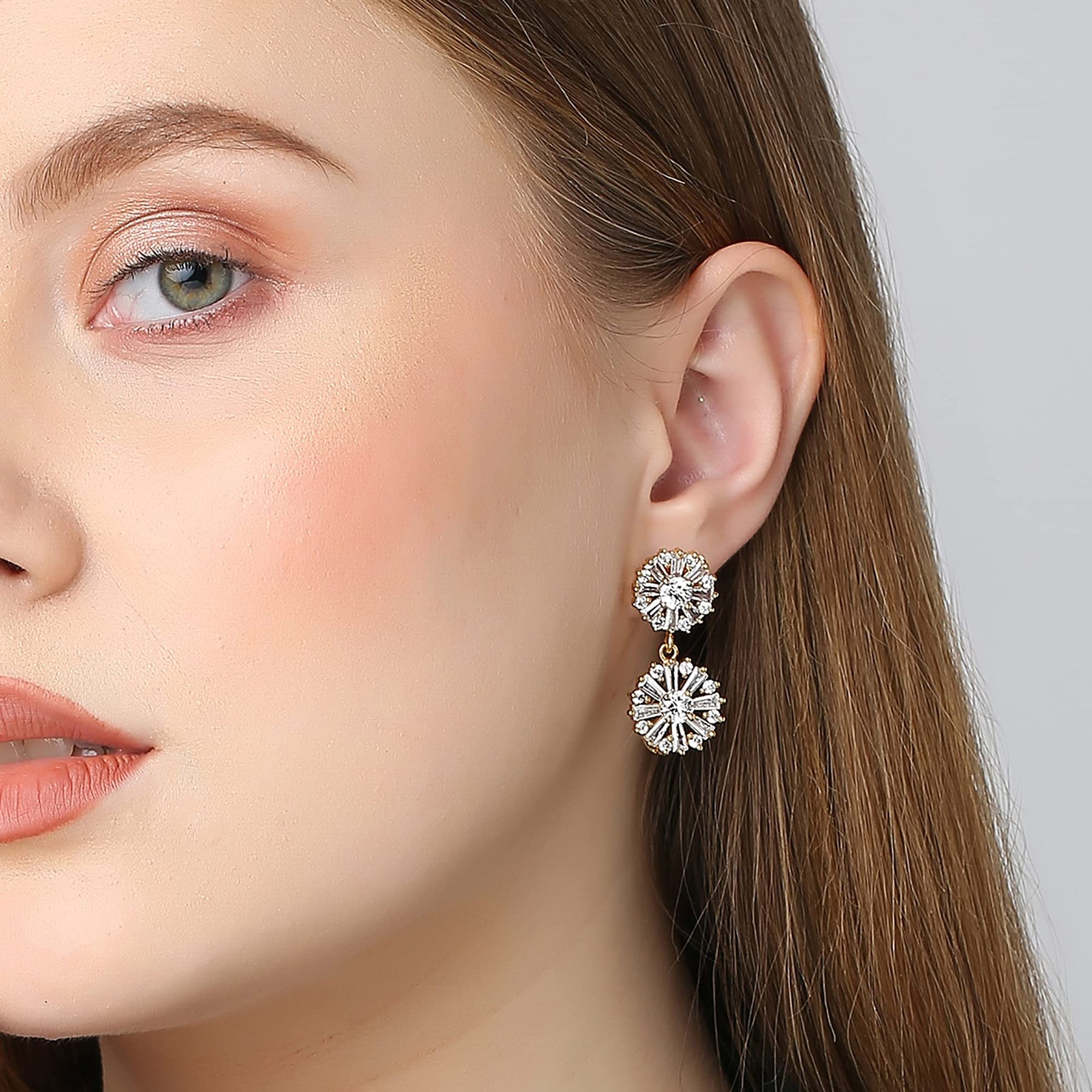 Elegant and stylish zircon solitaire diamond earrings that dangle beautifully.
