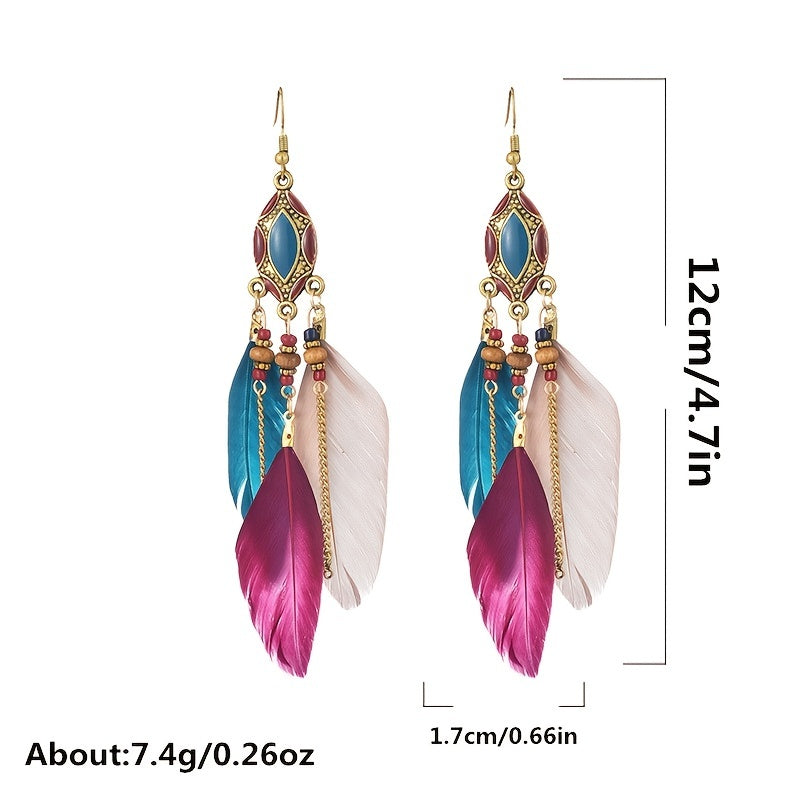 Add a touch of personality to your holiday vacation look with these unique feather tassel earrings. Made of high-quality alloy, these earrings are perfect for any occasion.