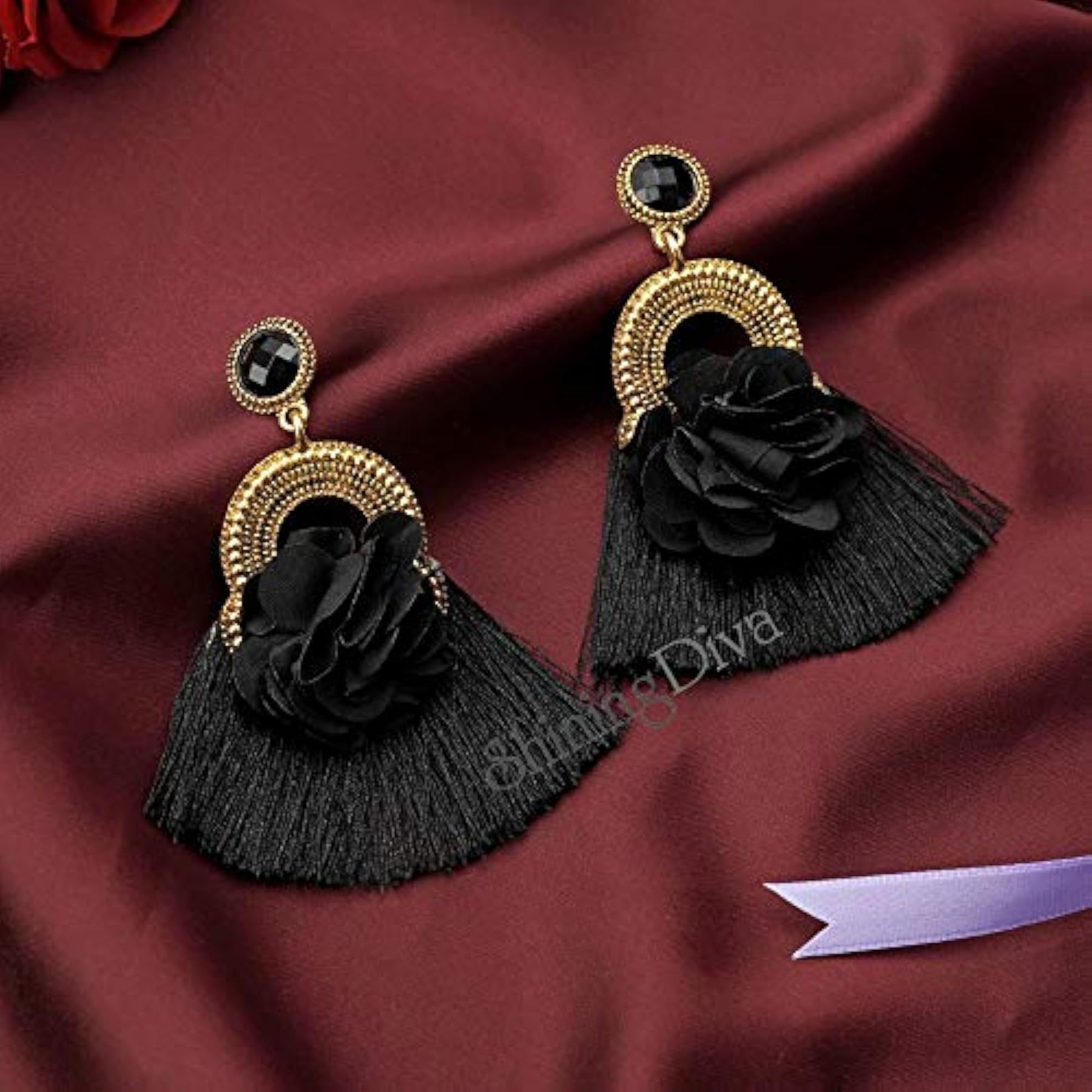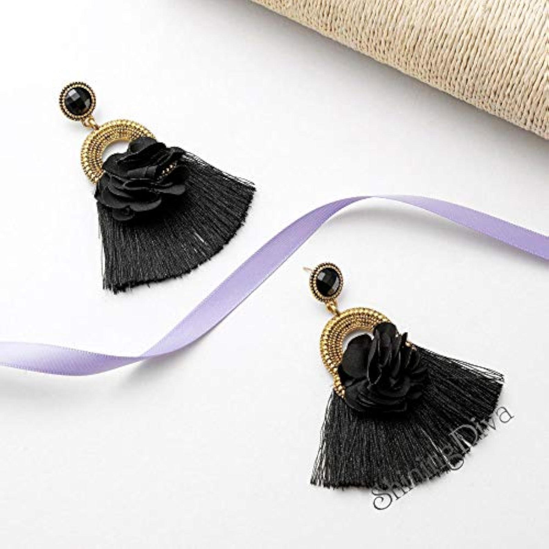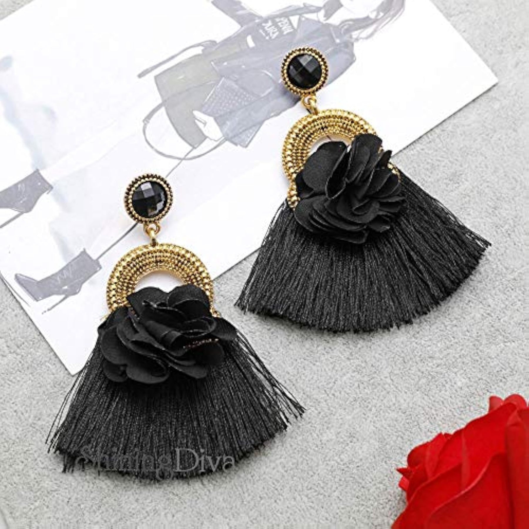 Enhance your look with these bohemian-inspired crystal tassel dangler earrings. Perfect for any occasion.