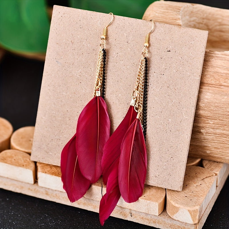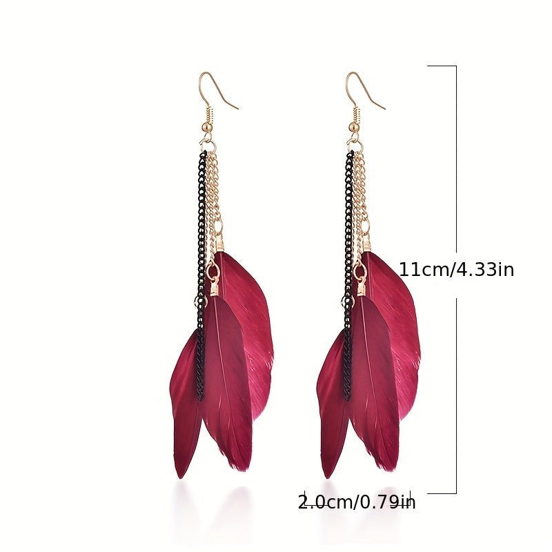These bohemian style earrings feature a chain tassel design with delicate feathers, making them a perfect gift for females who love unique jewelry.