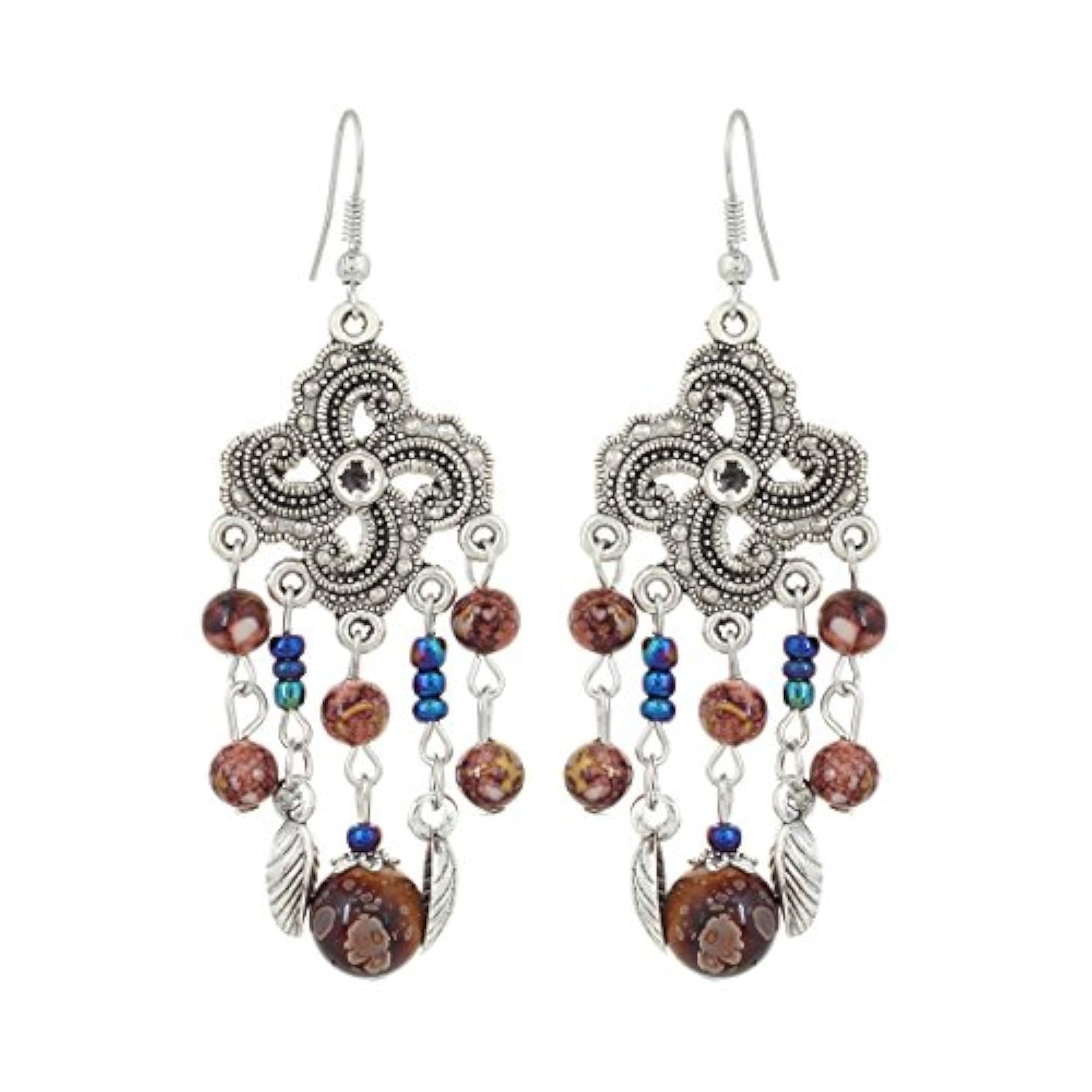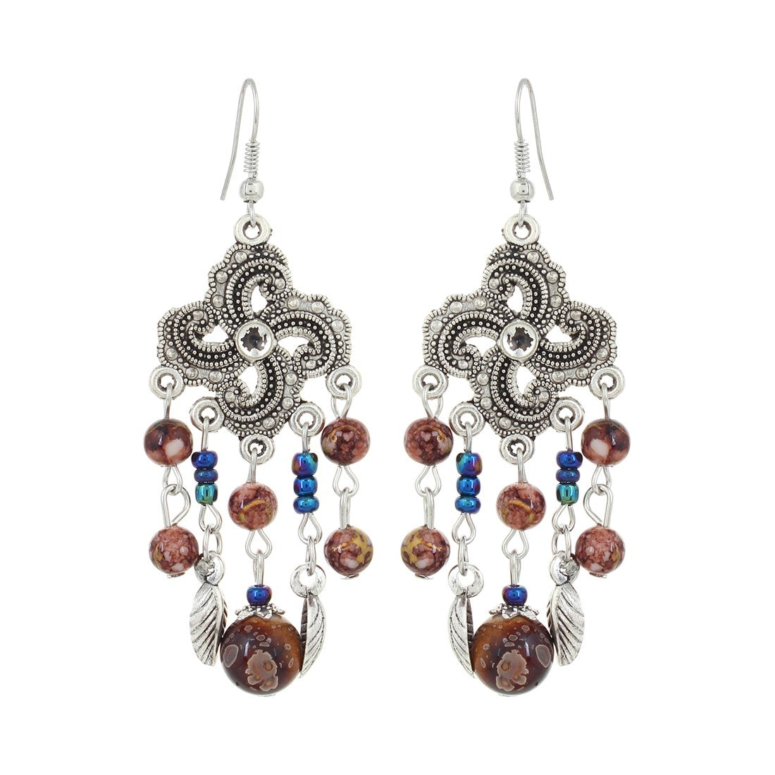 Elegant and stylish bohemian earrings with an oxidised silver finish for a traditional touch.