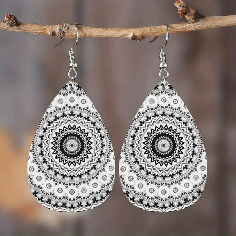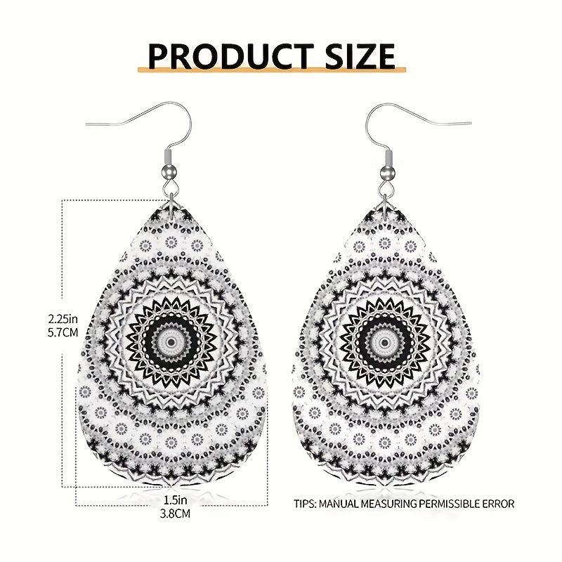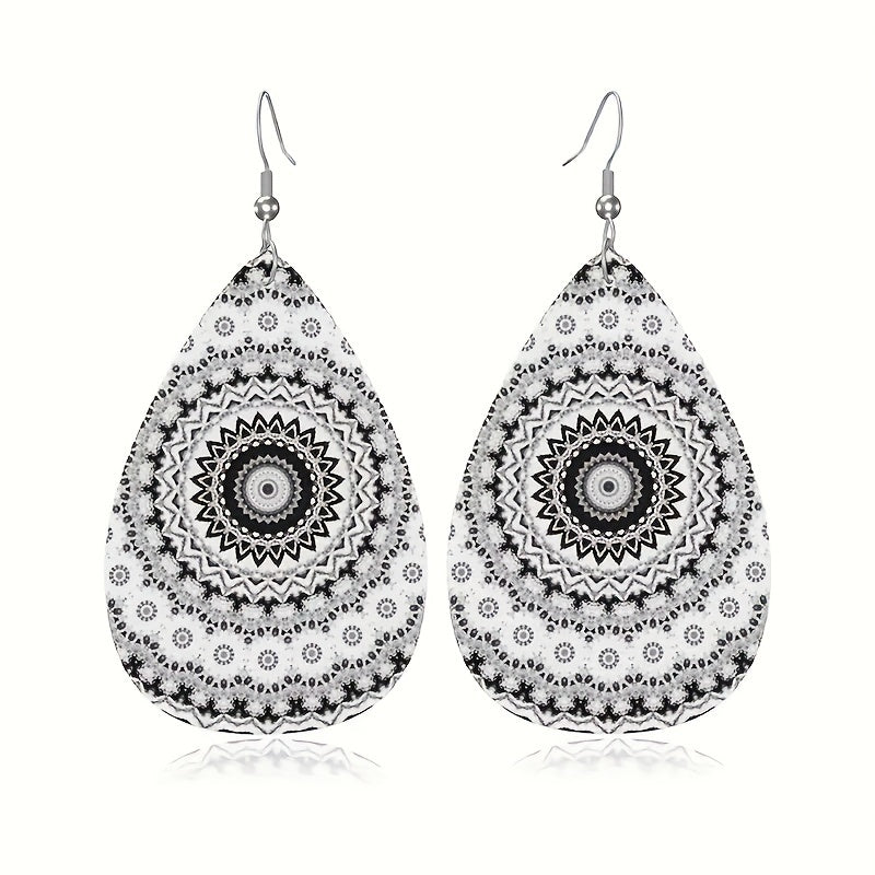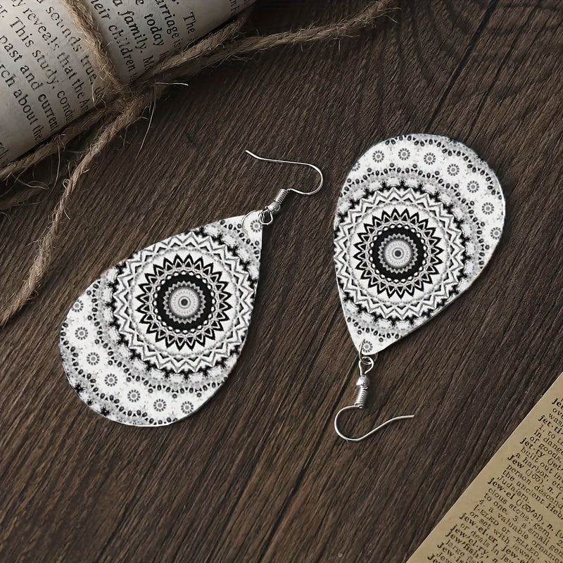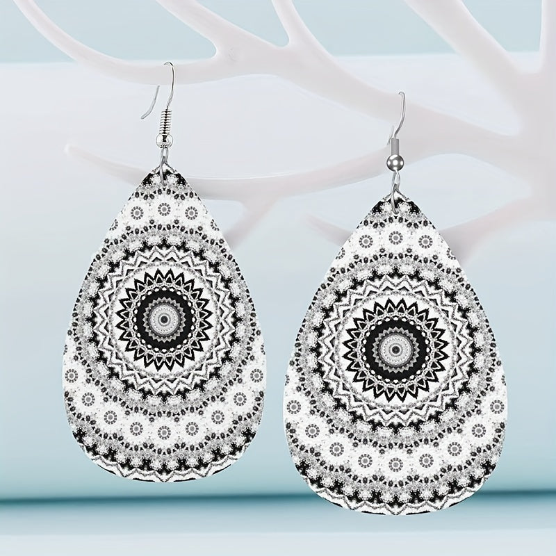 These Bohemian pattern leather earrings are perfect for adding a retro touch to your outfit. Featuring a teardrop shape, they are ideal for parties and events.