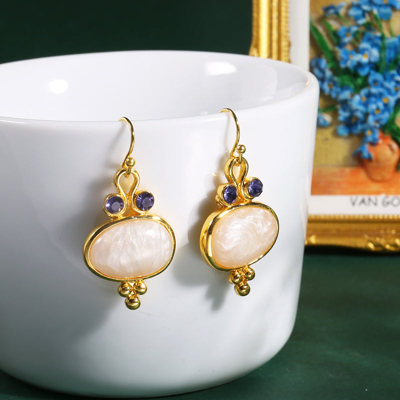 Boho Oval Synthetic Gems Drop Earrings Vintage Pendant