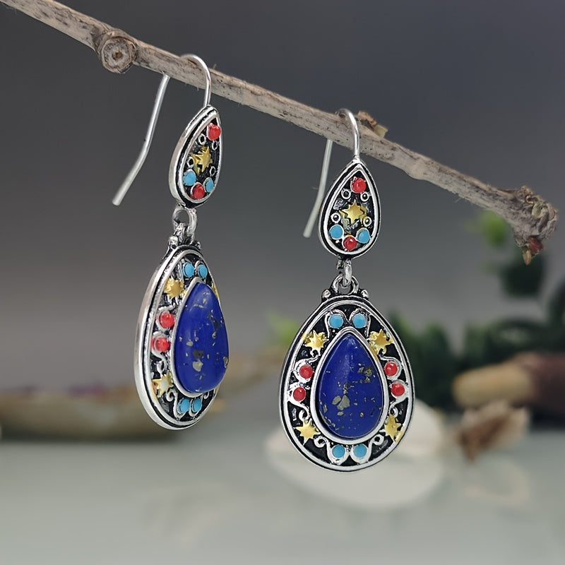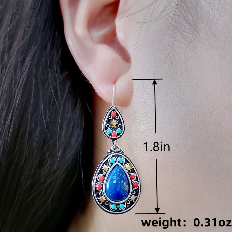Elegant Boho teardrop earrings with a 925 silver plating, perfect for banquets, parties, and holidays. Makes a great gift for women and girls.