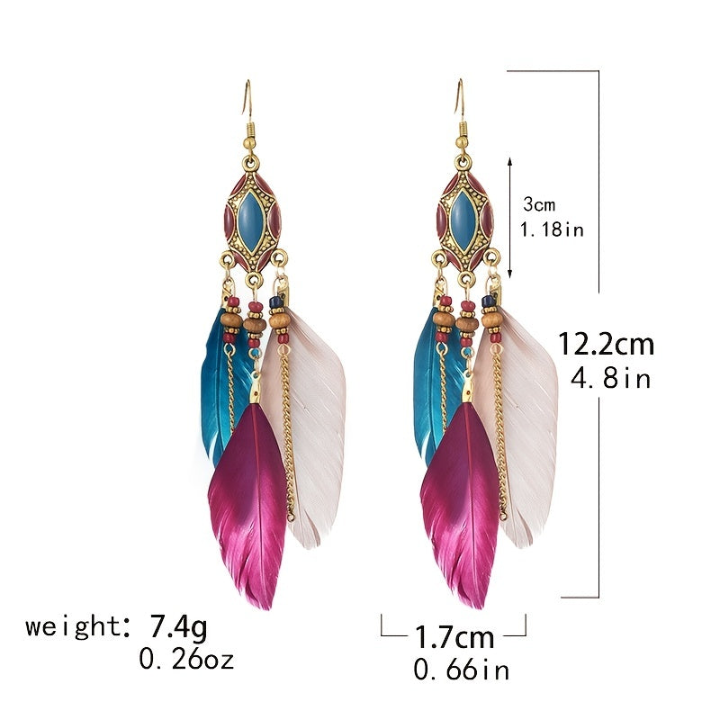 Boho Vintage Feather Tassel Dangle Drop Earrings Creative Jewelry 1Pair