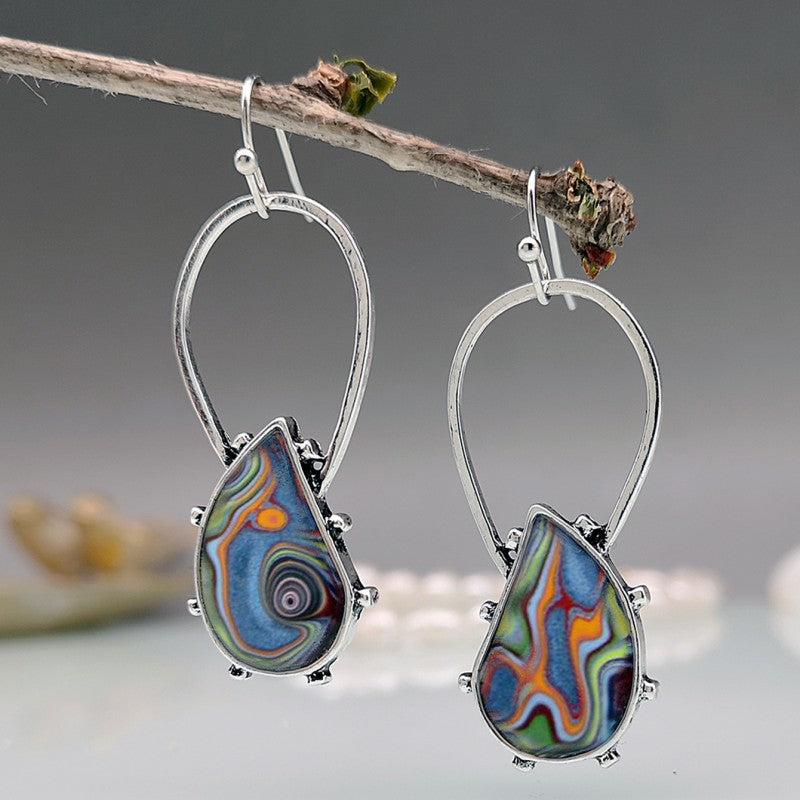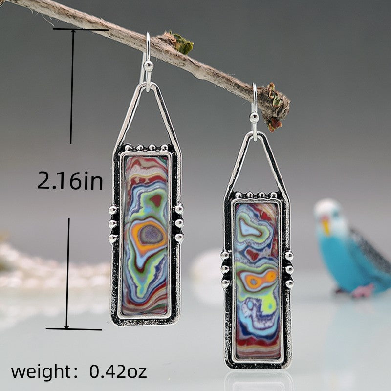 Boho Vintage Marble Pattern Stone Drop Earrings