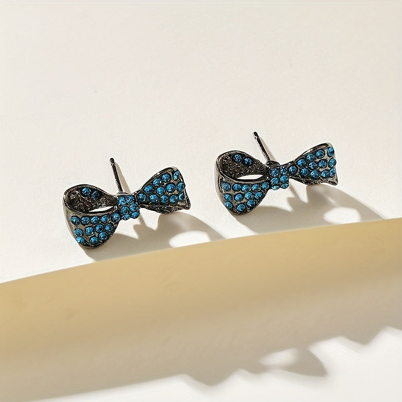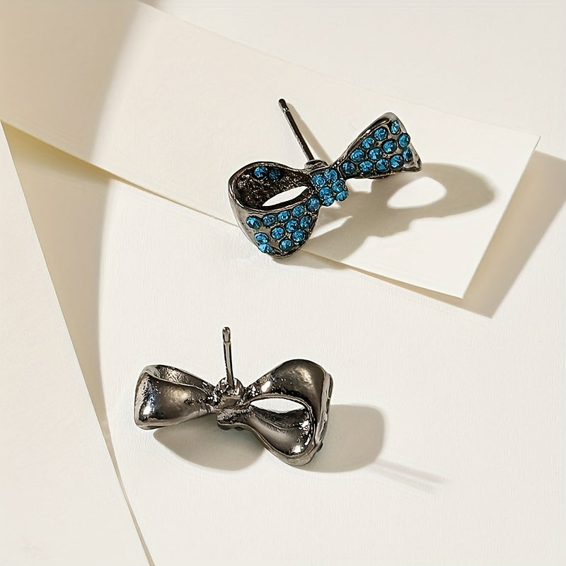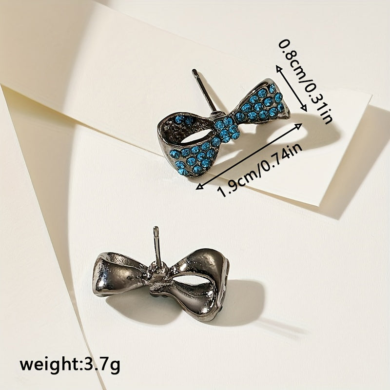 Add a touch of glamour to your outfit with these bowknot stud earrings featuring a rhinestone accent. Perfect for daily casual wear, these earrings are made of zinc alloy with an 18K gold plating.