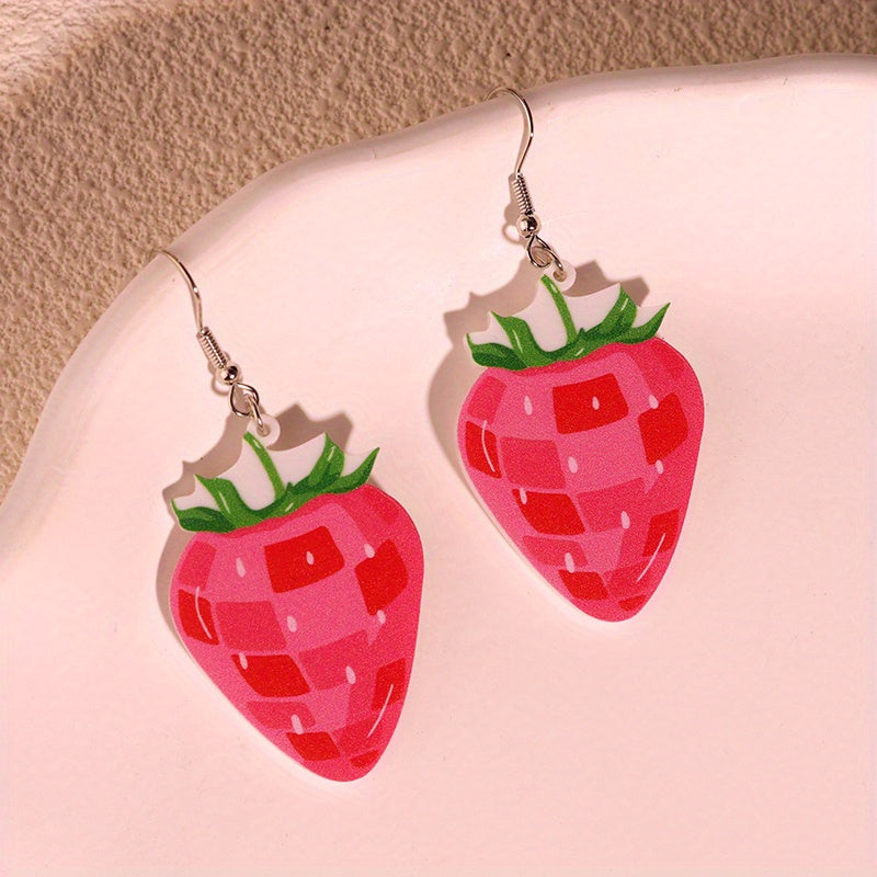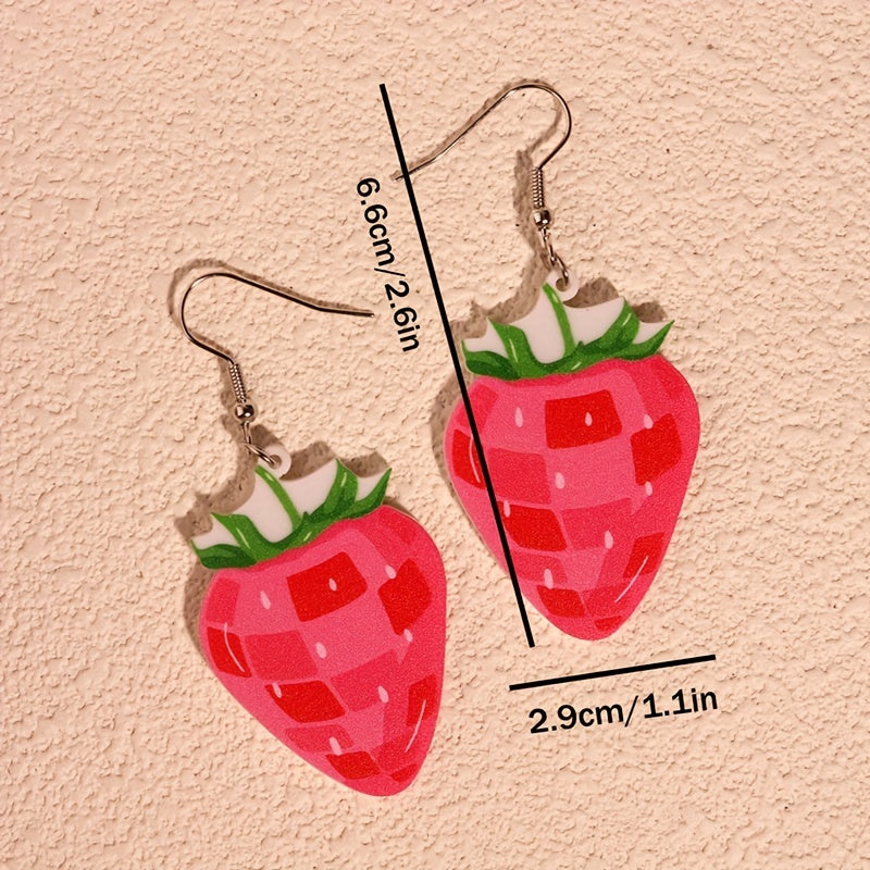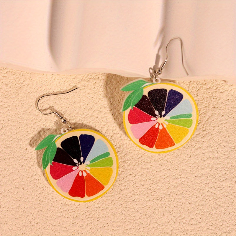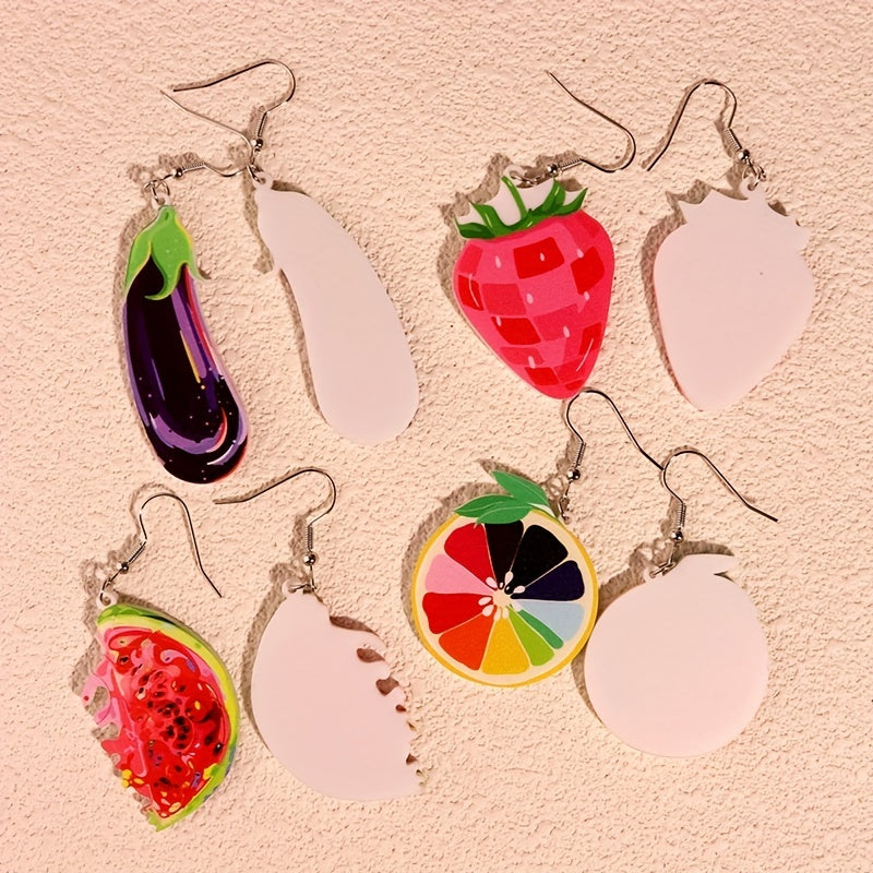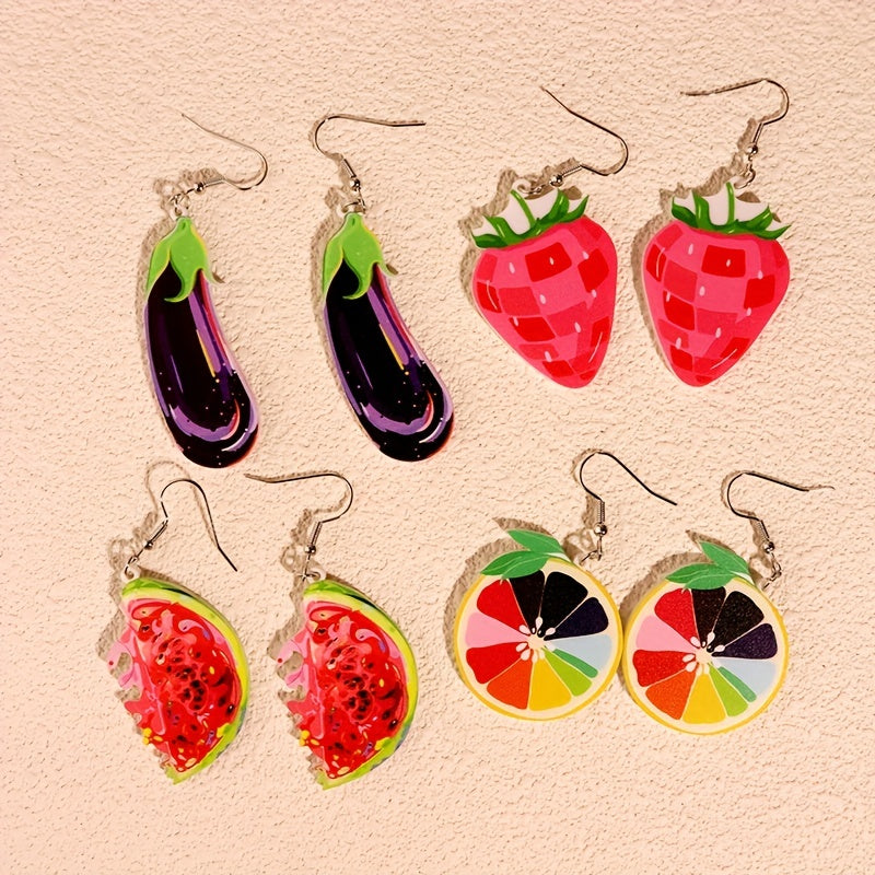 Add a fun touch to your daily casual outfits with these acrylic dangle earrings featuring cute fruit and vegetable designs.