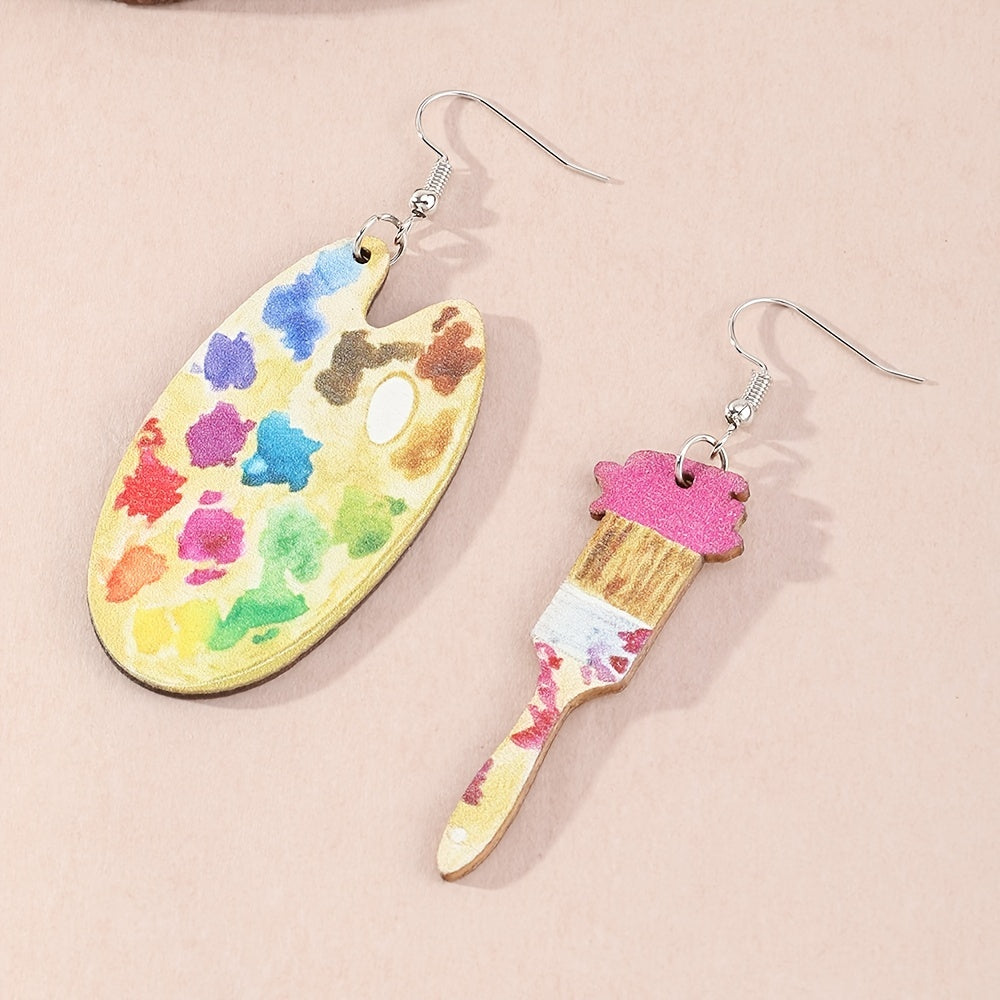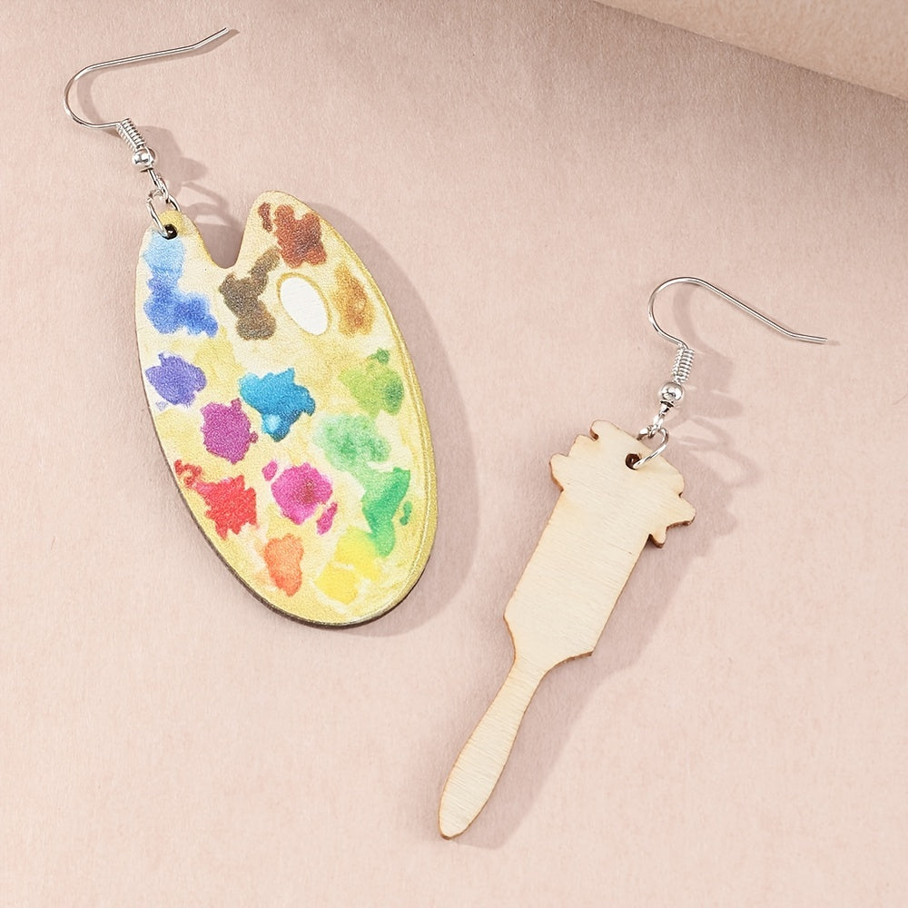 Colorful Wooden Paint Drop Earrings For Women Girl Ladies Jewelry