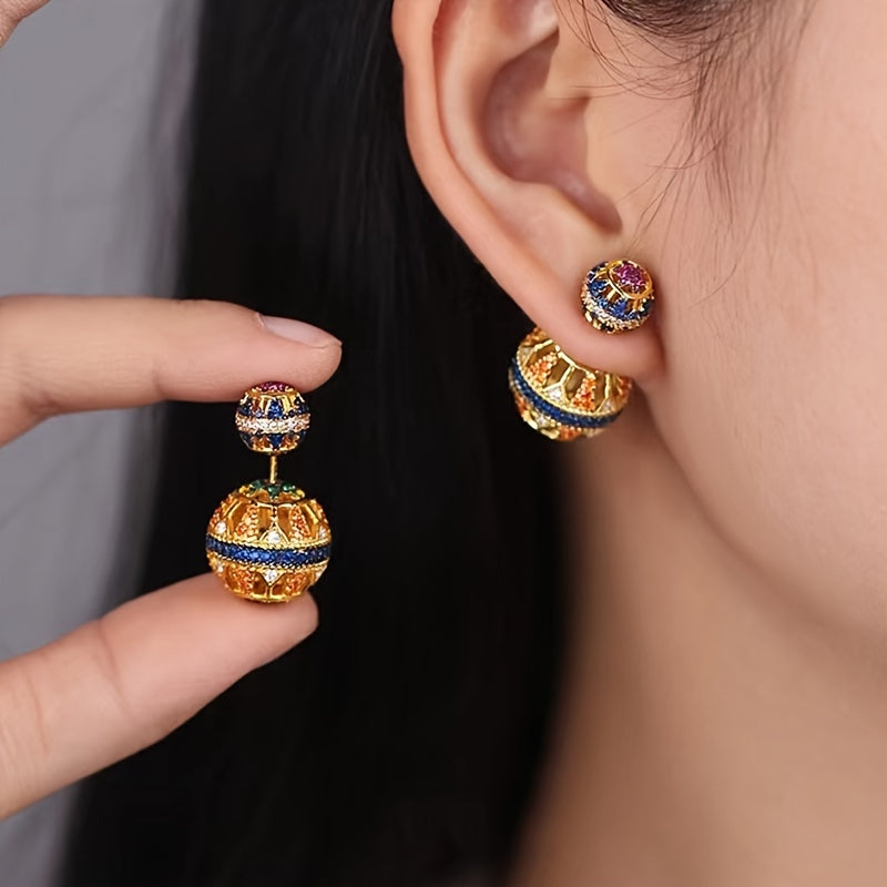 Add a touch of color and elegance to your look with these delicate zircon ball drop dangle earrings. Perfect for any occasion!