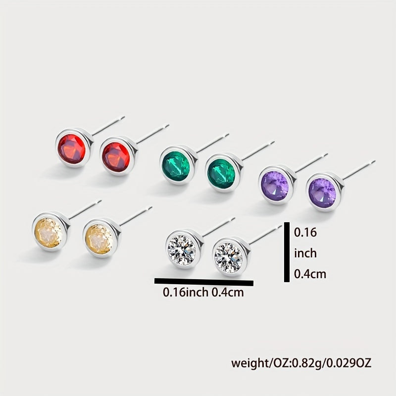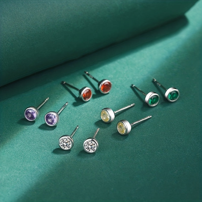 Colorful Zircon Stud Earrings Sterling 925 Silver Plated Jewelry