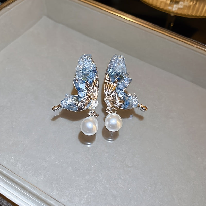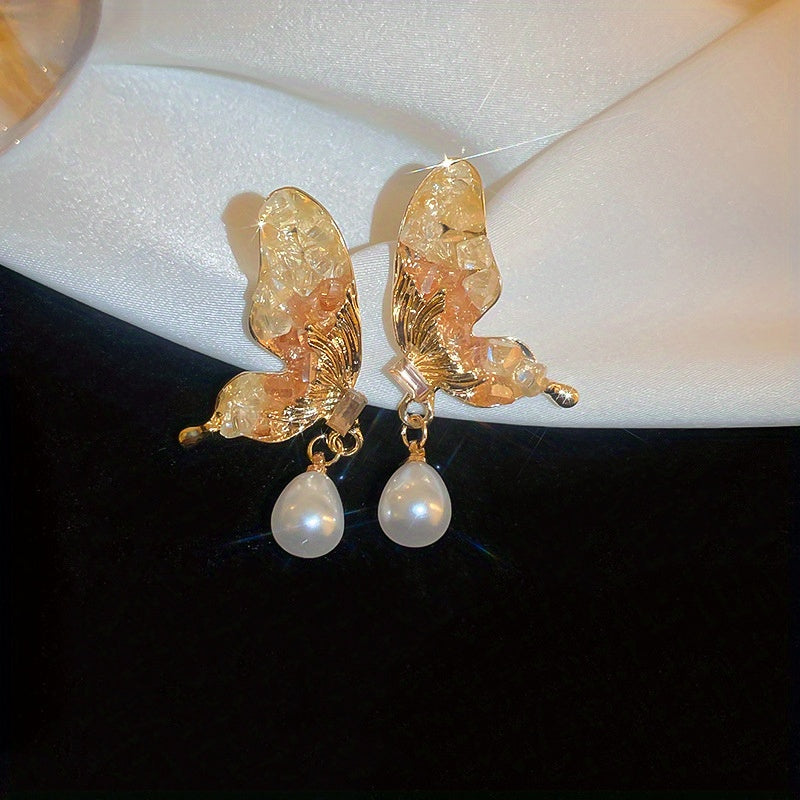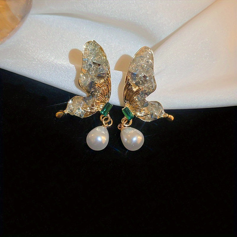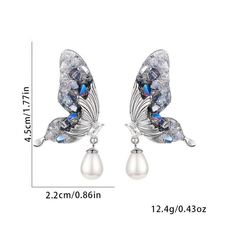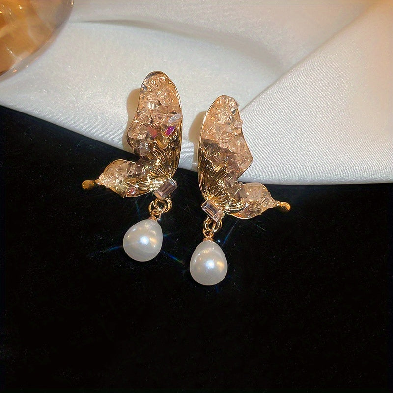 Add a touch of elegance to your outfit with these stunning crystal butterfly faux pearl drop earrings. Perfect for women and girls.