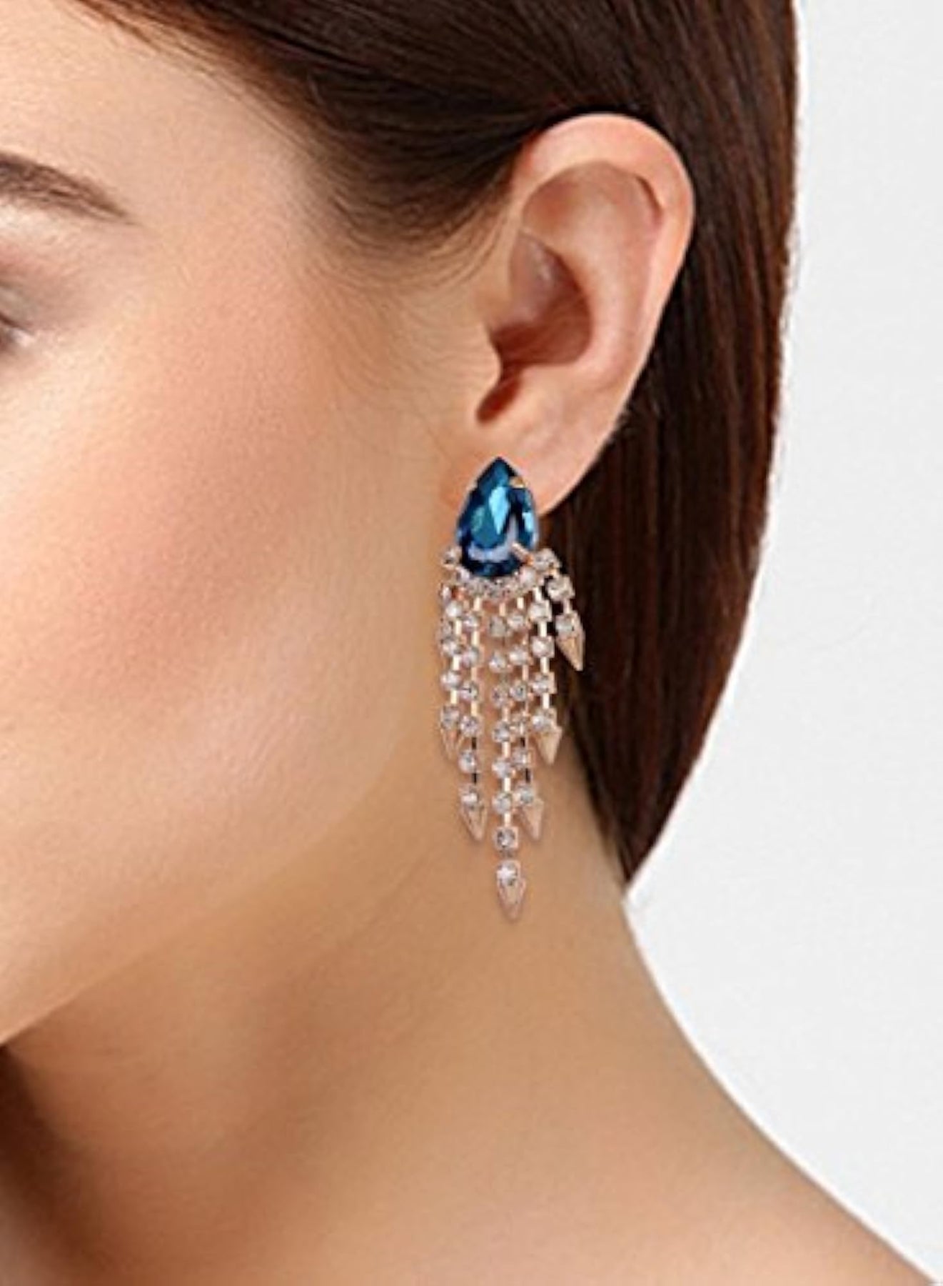 Elevate your look with these stunning crystal drop earrings. These earrings feature a dazzling design that will add a touch of glamour to any outfit.