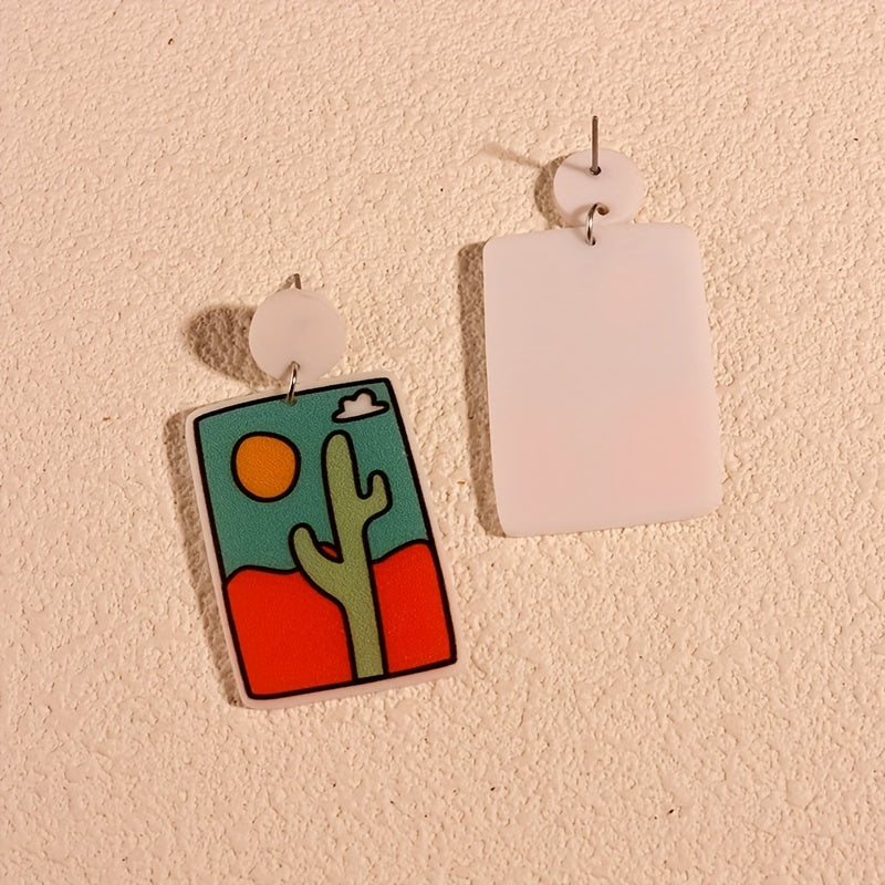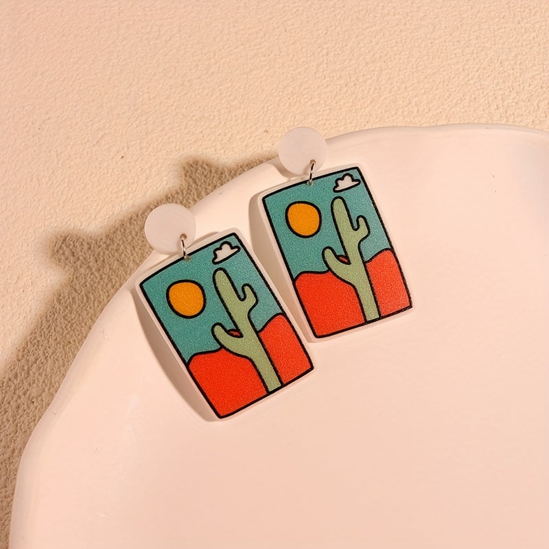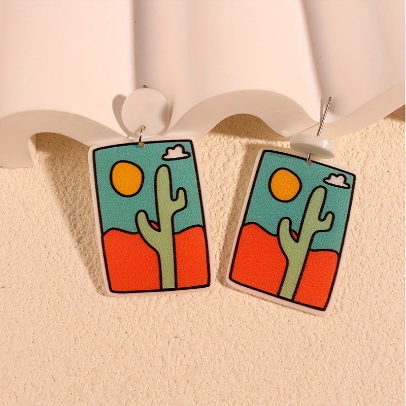 Desert Cactus Dangle Earrings Acrylic Jewelry Female Gift