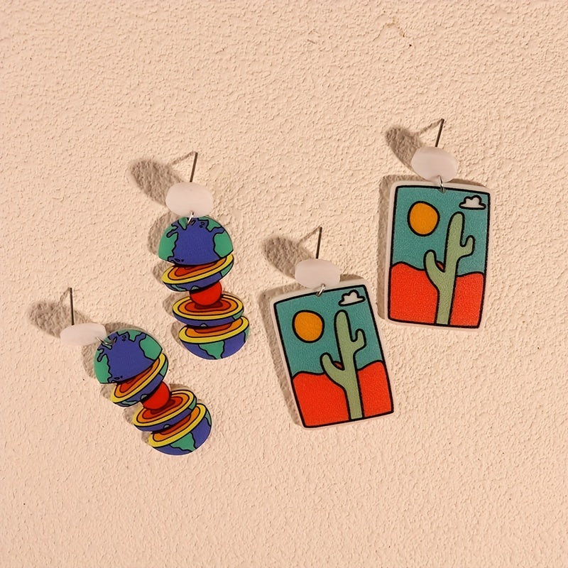 These unique earrings feature a cartoon western desert cactus design, perfect for adding a touch of fun to your outfit. They make a great gift for any female jewelry lover.