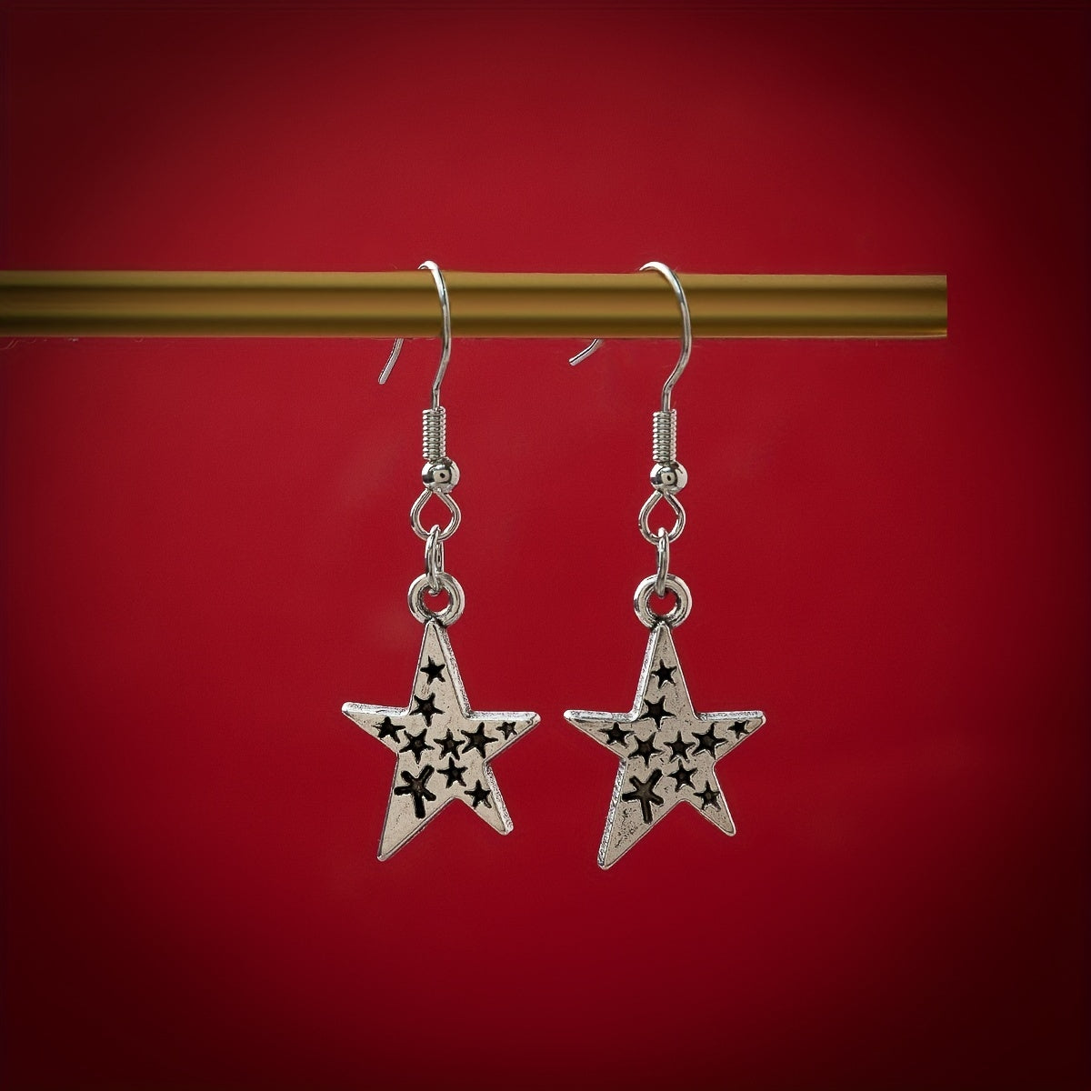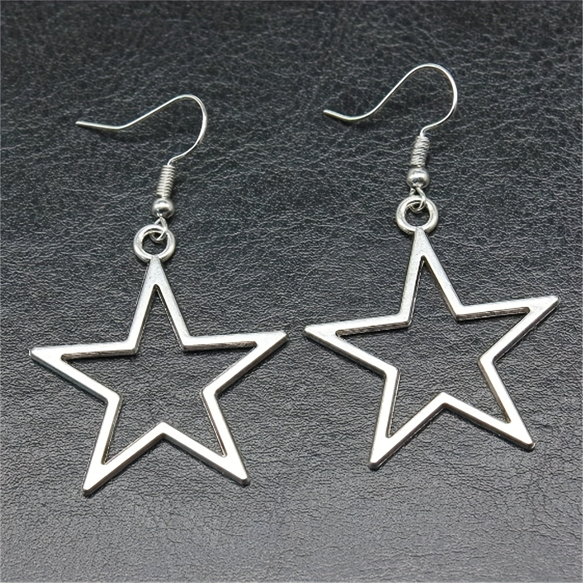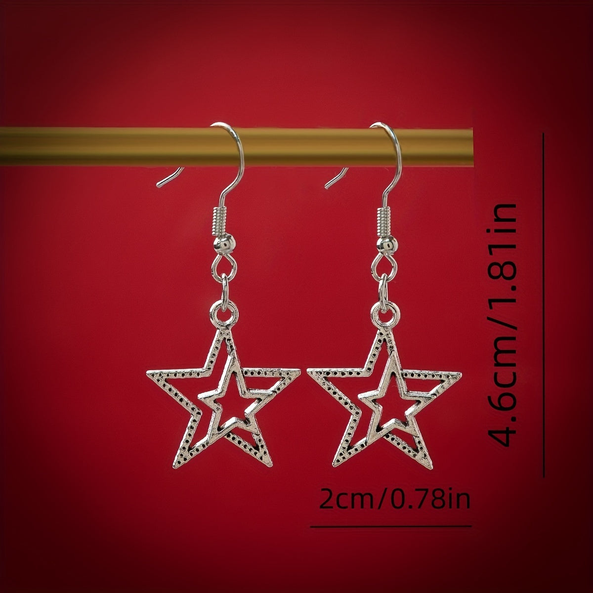 These delicate dangle earrings feature a double hollow pentagram design, perfect for adding a retro Y2K vibe to any outfit. Made from high-quality zinc alloy, they make a great gift for any fashion-forward female.