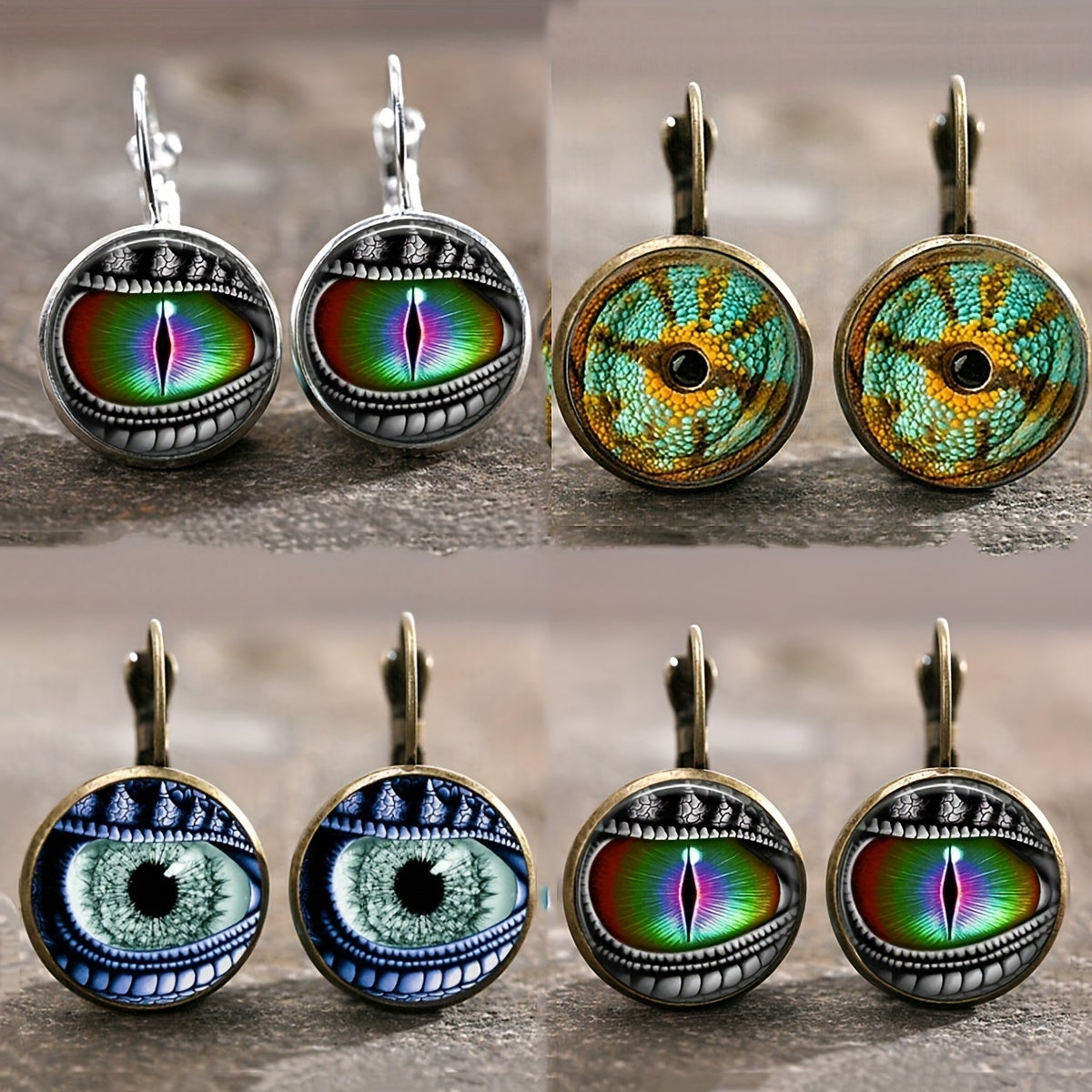 These earrings feature a mysterious dragon eye symbol design with a timeless gemstone. Made of zinc alloy with silver plating, these earrings make a great gift for women.