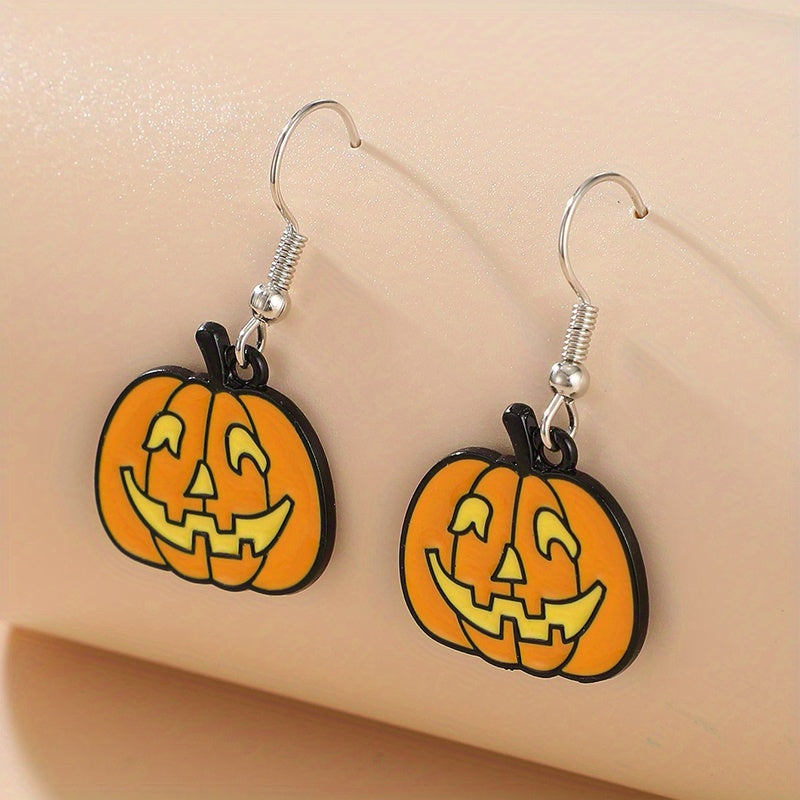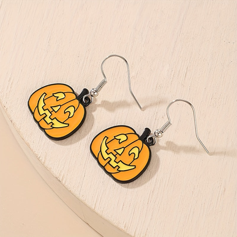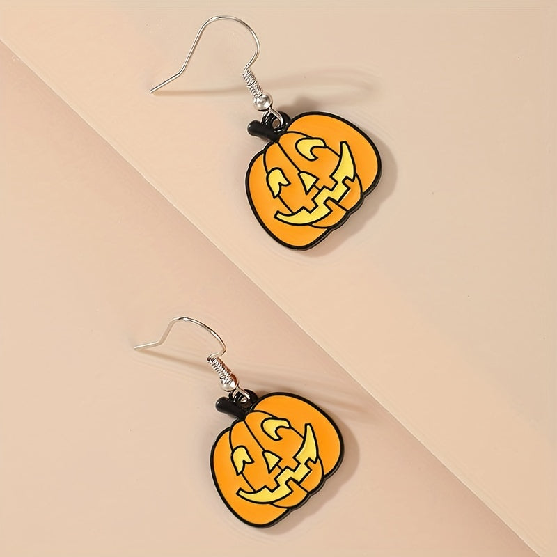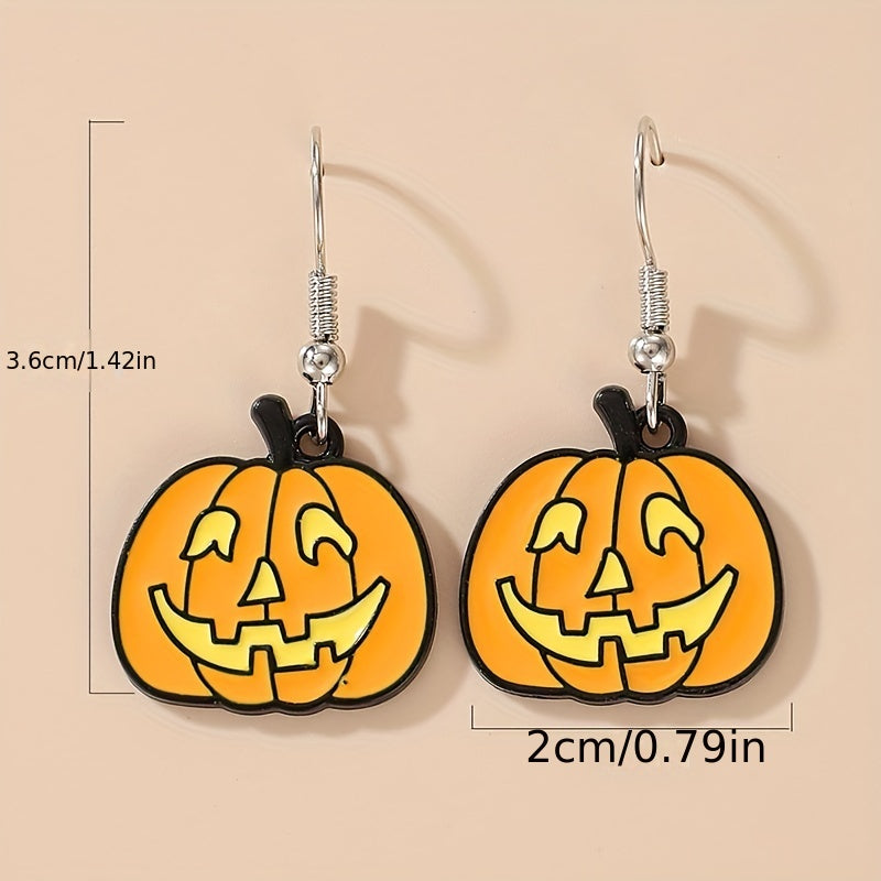 Hip hop style alloy jewelry featuring delicate pumpkin dangle earrings with spooky ghost ornaments. Perfect for adding a touch of horror to your outfit.