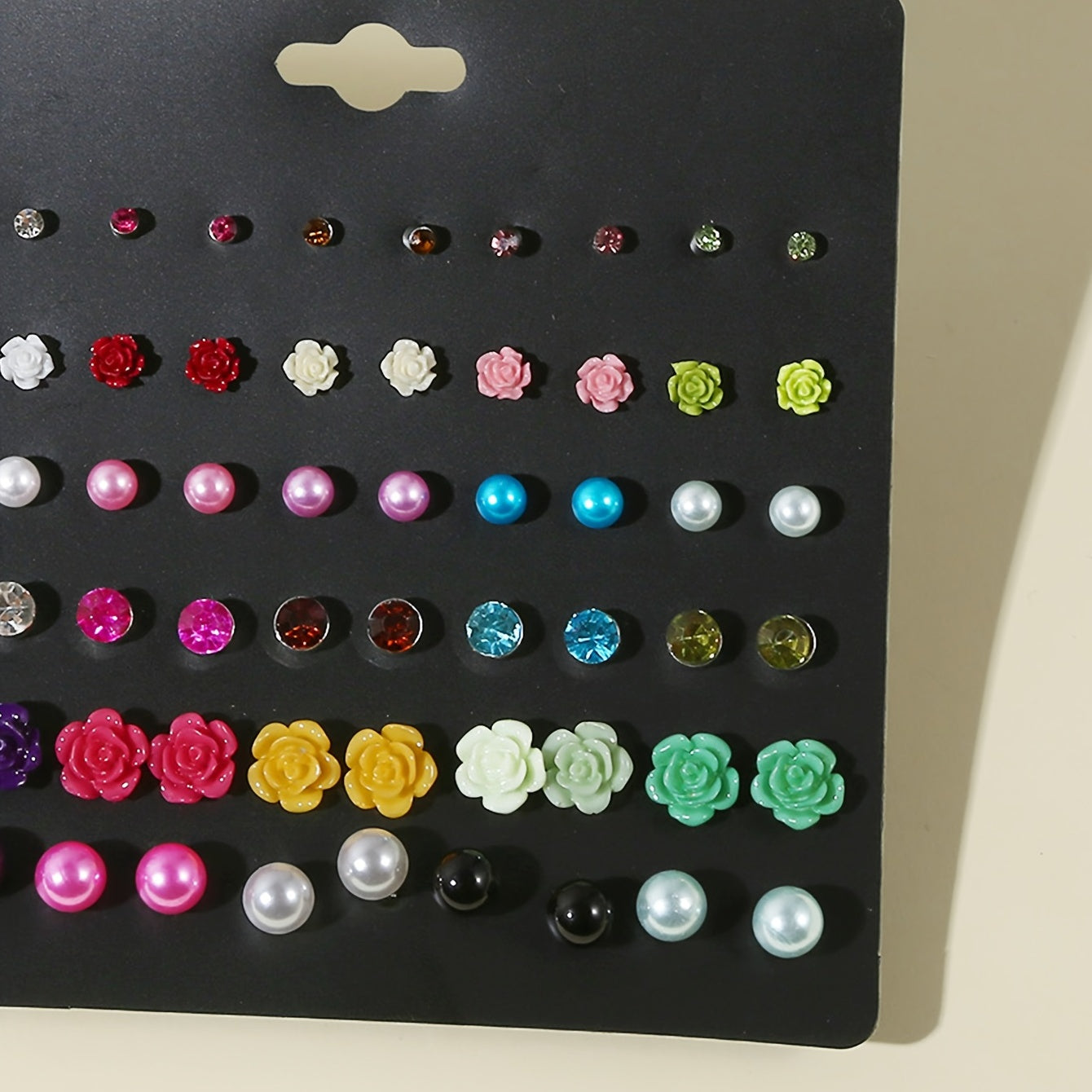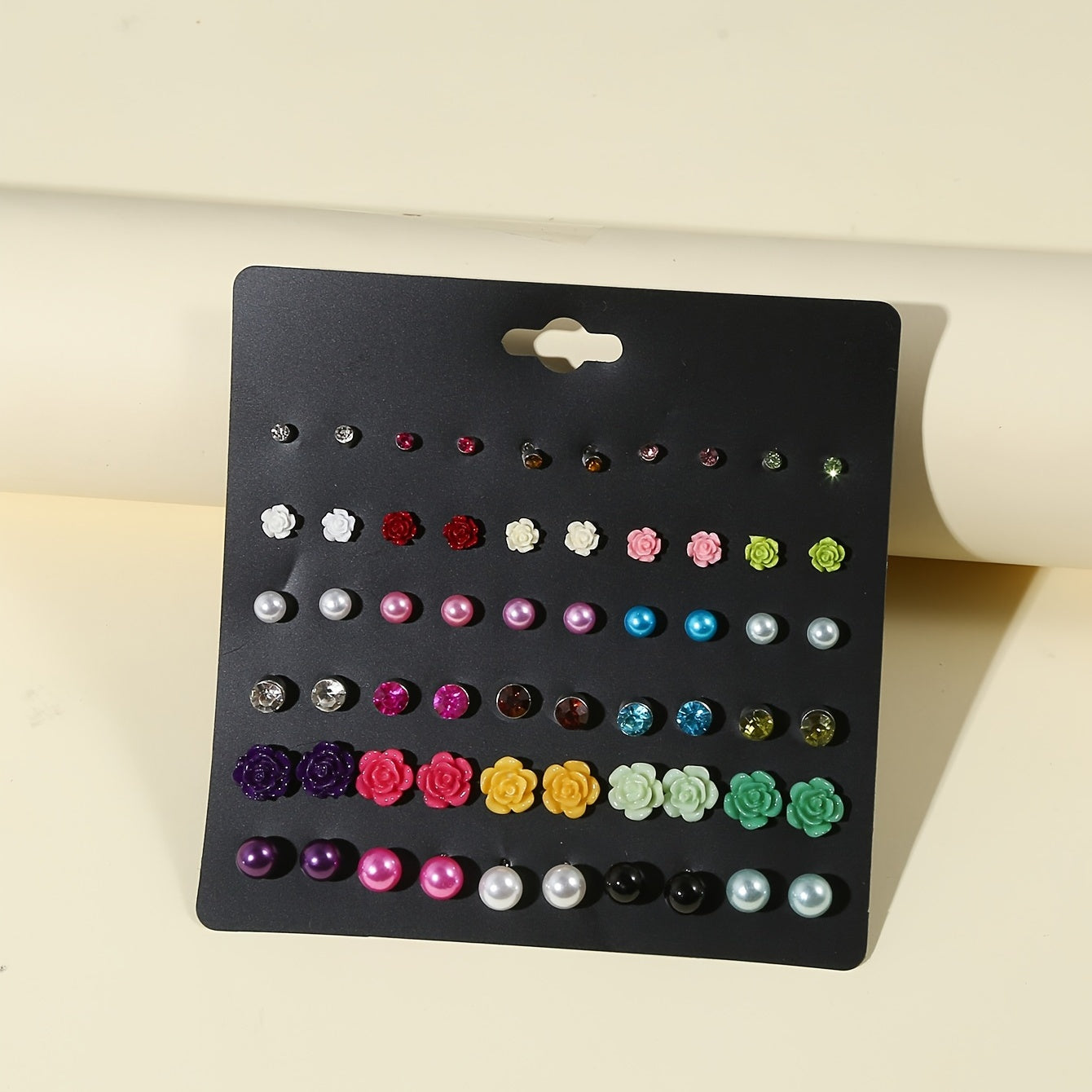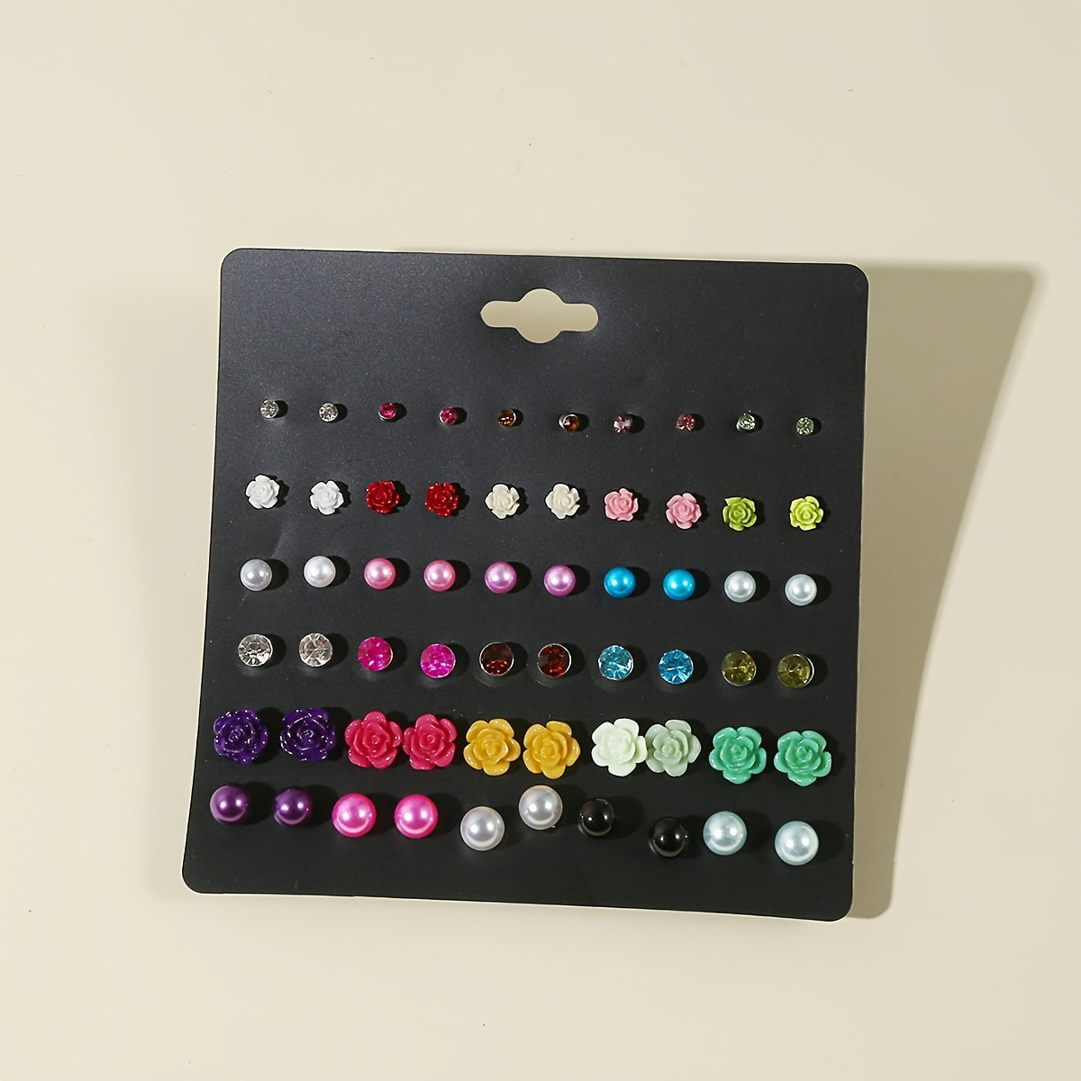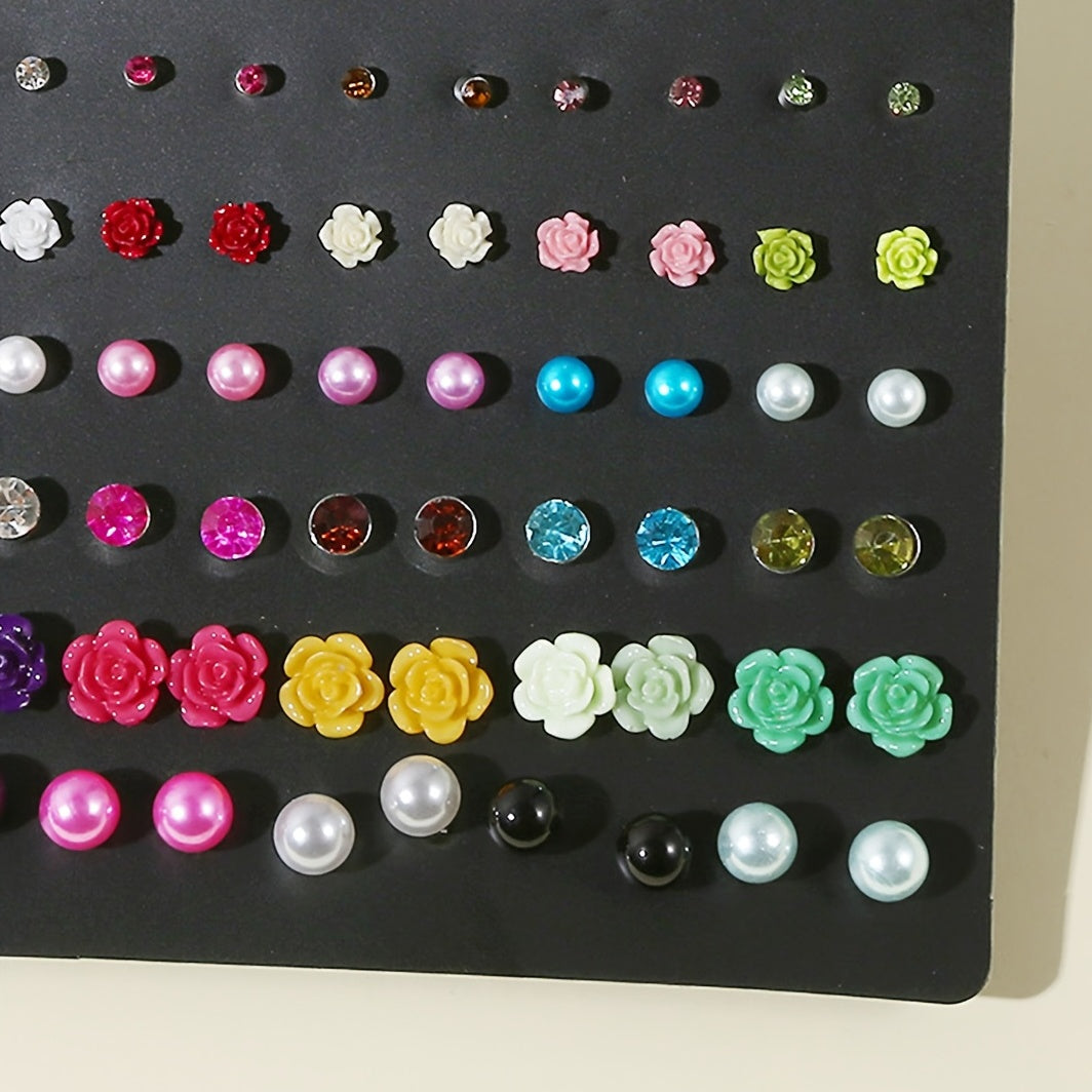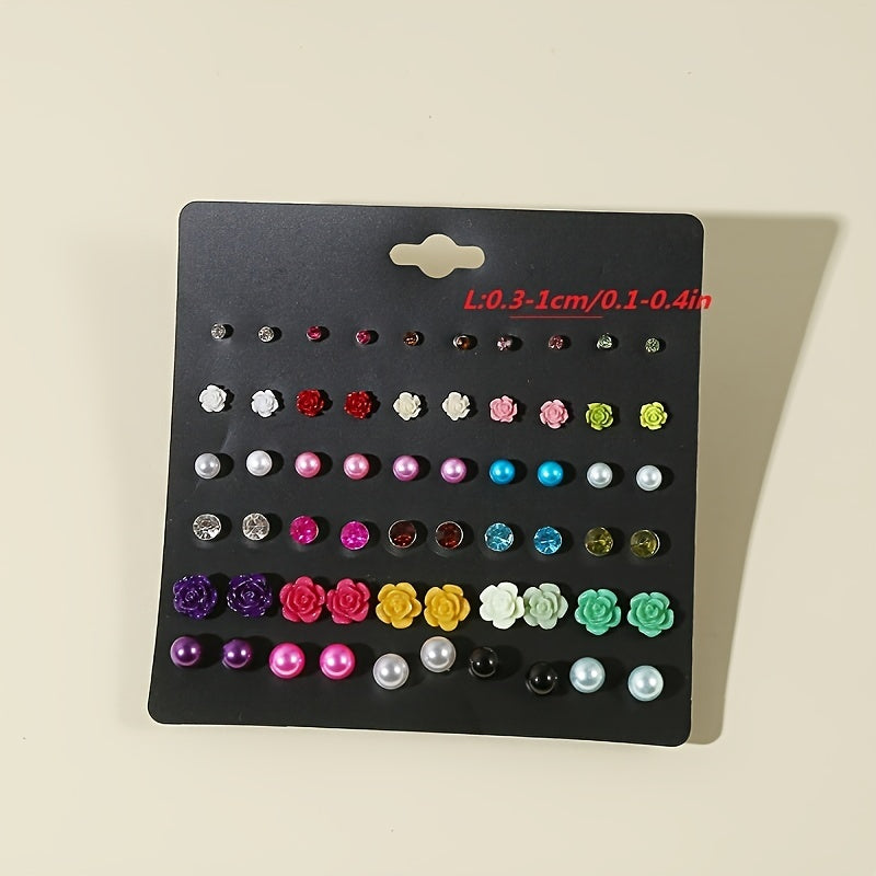 These mini flower pearl stud earrings are perfect for adding a touch of elegance to any outfit. With 30 pairs in a set, you'll have a variety of options to choose from. A must-have for any woman's accessory collection.