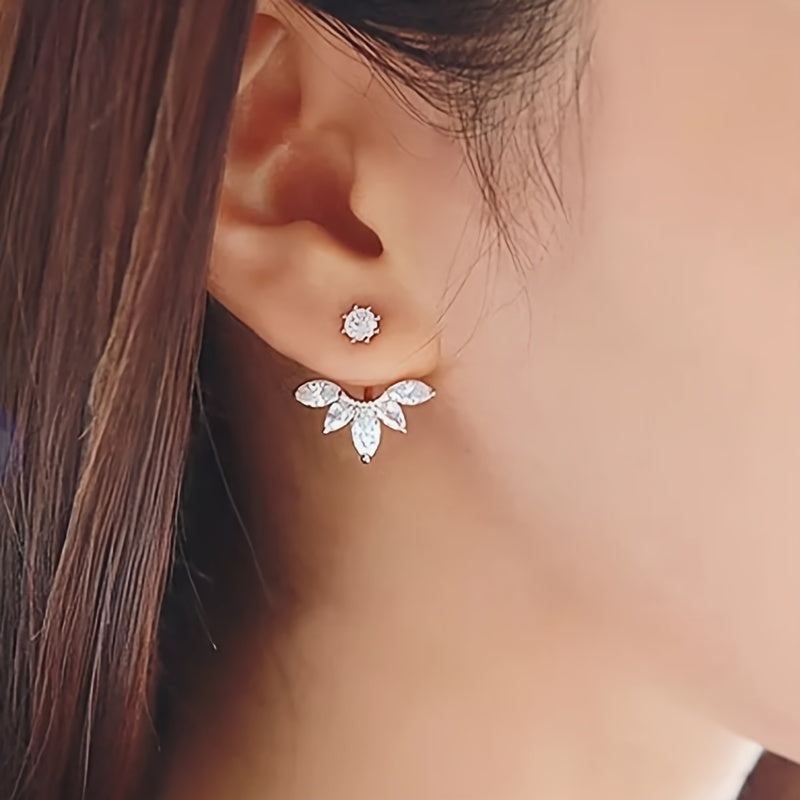 These earrings feature a floral design with sparkling crystals, adding a touch of elegance to any outfit. Perfect for women and girls who appreciate delicate jewelry.