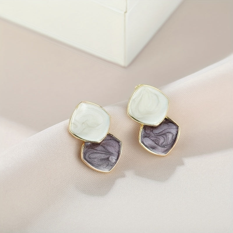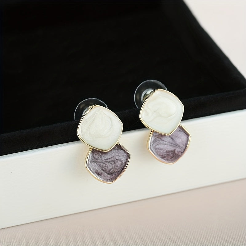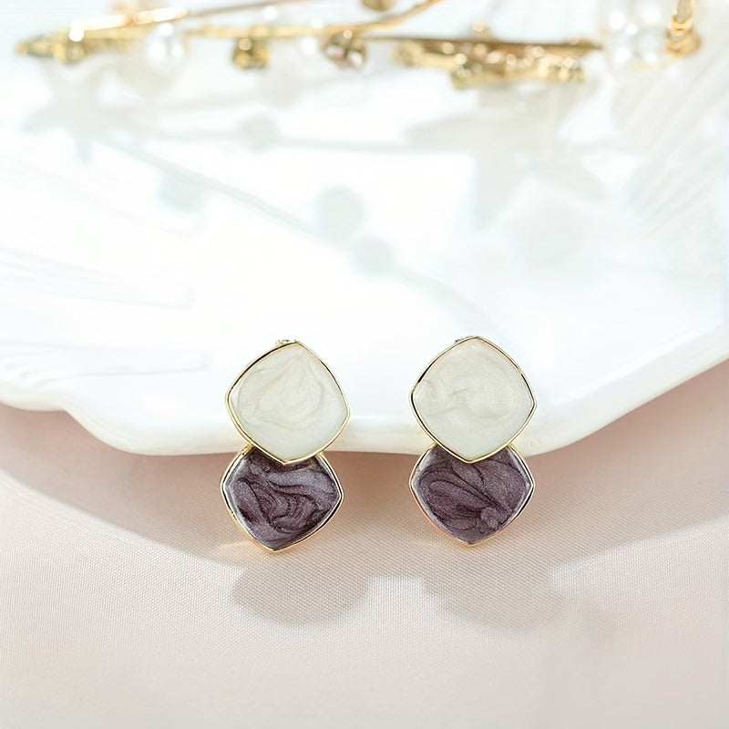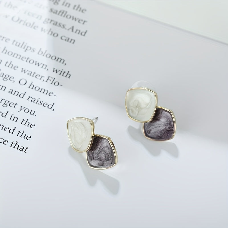 Geometric Rhombus Stud Earrings, Minimalist Style, 18K Plated Jewelry