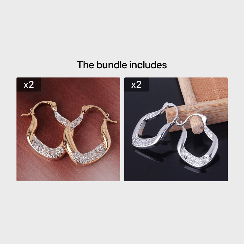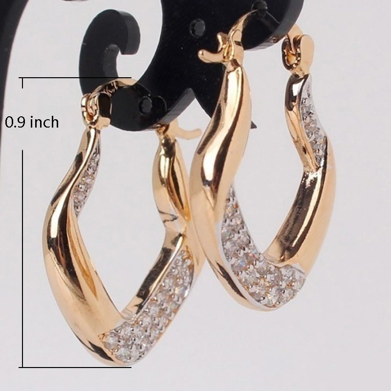 These stylish hoop huggie earrings feature an irregular geometric design with inlaid zircon stones. Crafted with 18K gold plating, these delicate earrings are perfect for everyday wear or special occasions.
