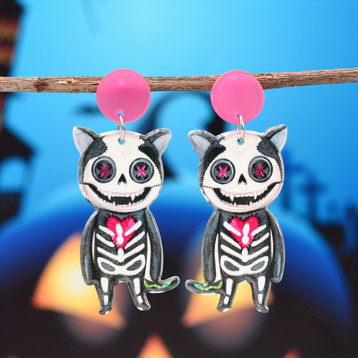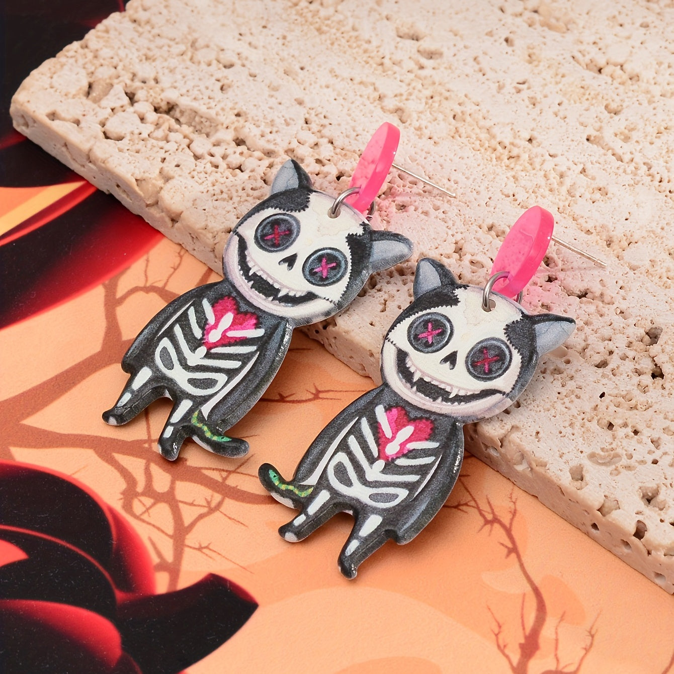 Ghost Cat Dangle Earrings Halloween Party Punk Style Acrylic Jewelry