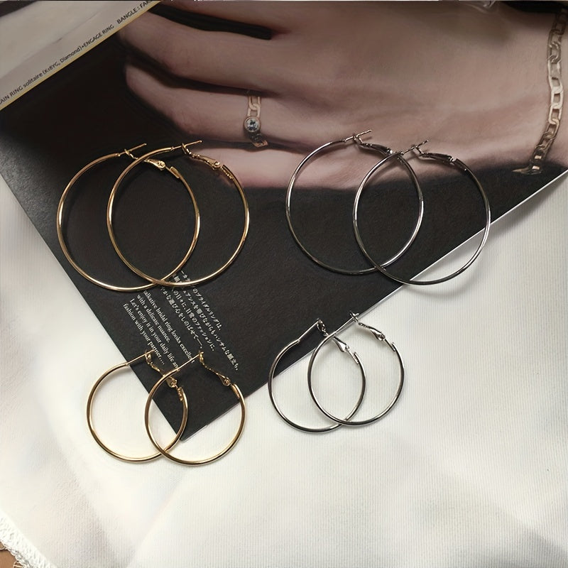 These hoop earrings are the perfect accessory to add a touch of glamour to your daily wear. Made of high-quality alloy, they are durable and shiny. Ideal gift for women.