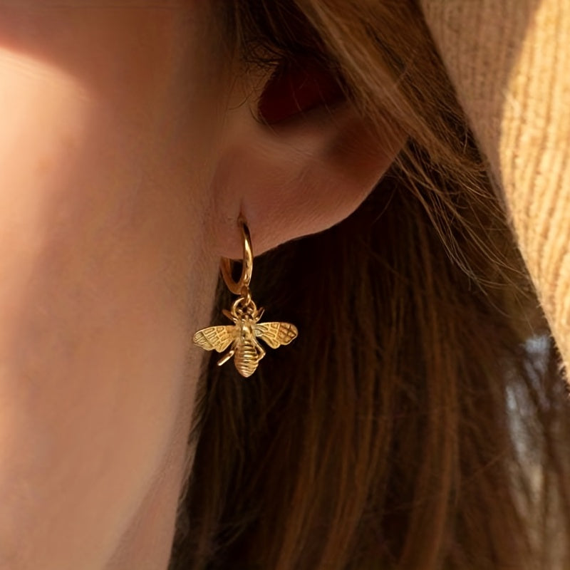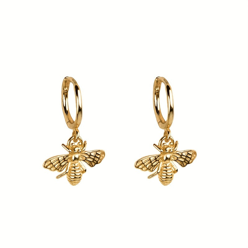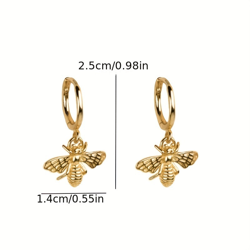 These stylish dangle earrings feature golden bee pendants, perfect for a leisure style look. Made of high-quality copper, this jewelry piece is a great gift for any female.