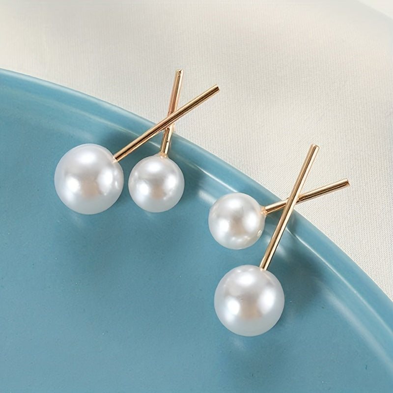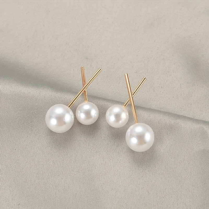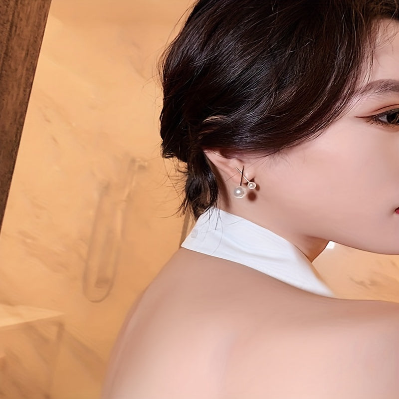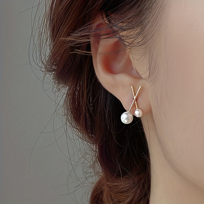 Golden Cross & Faux Pearl Decor Stud Earrings Alloy Jewelry Gift