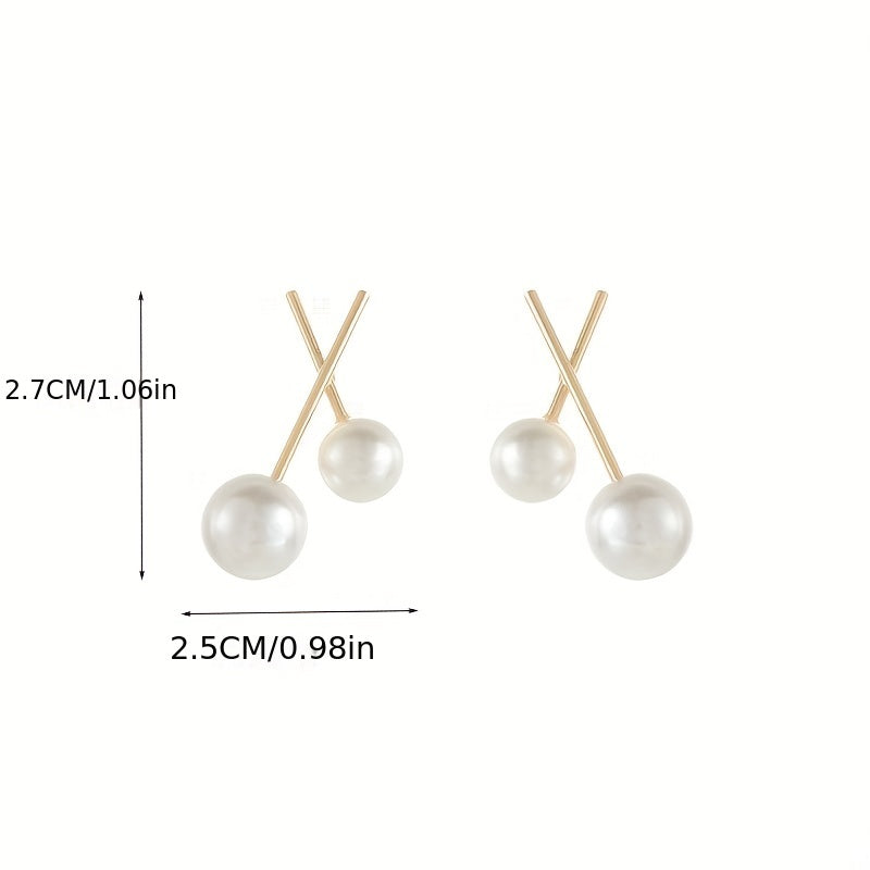 Elegant and delicate stud earrings featuring a golden cross and faux pearl design. Perfect gift for women who appreciate stylish accessories.
