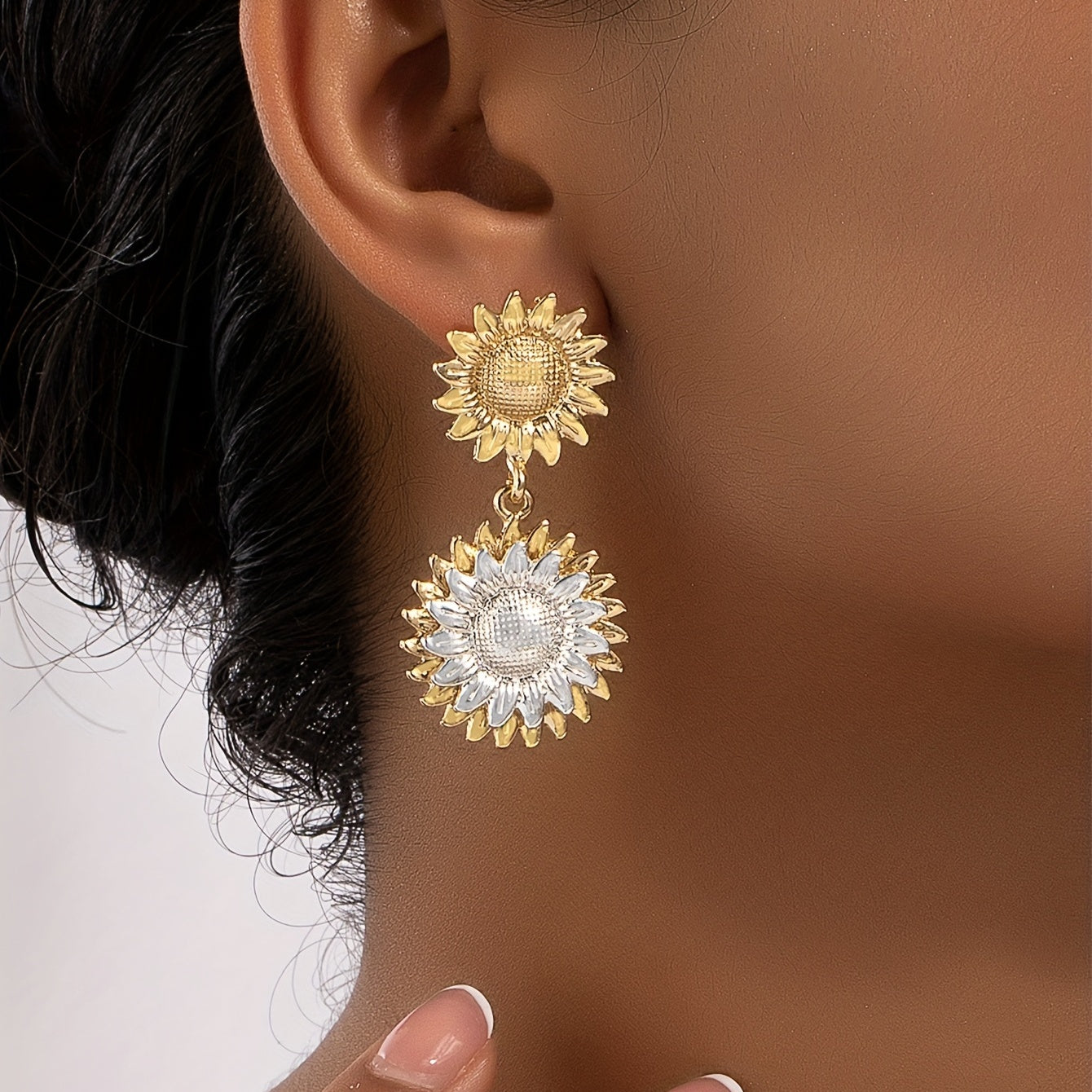 These delicate flower stud earrings are a perfect accessory for parties or special occasions. They are made of zinc alloy and have a unique design that adds a touch of elegance to any outfit.