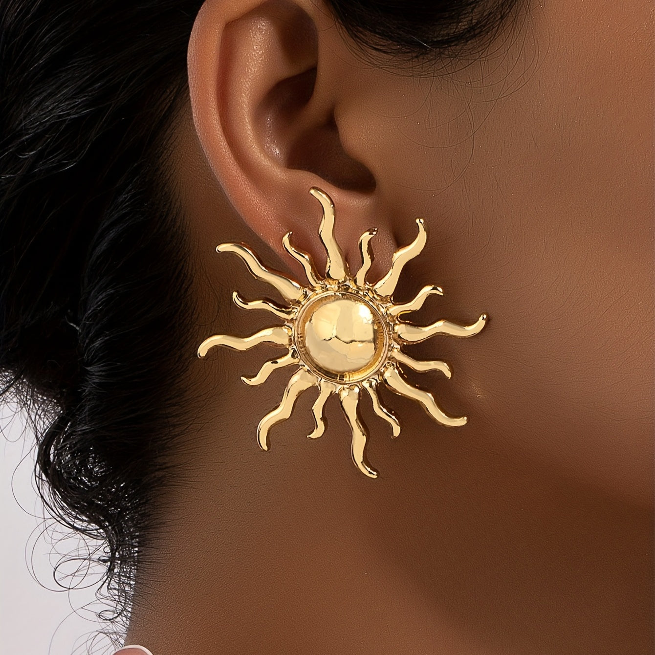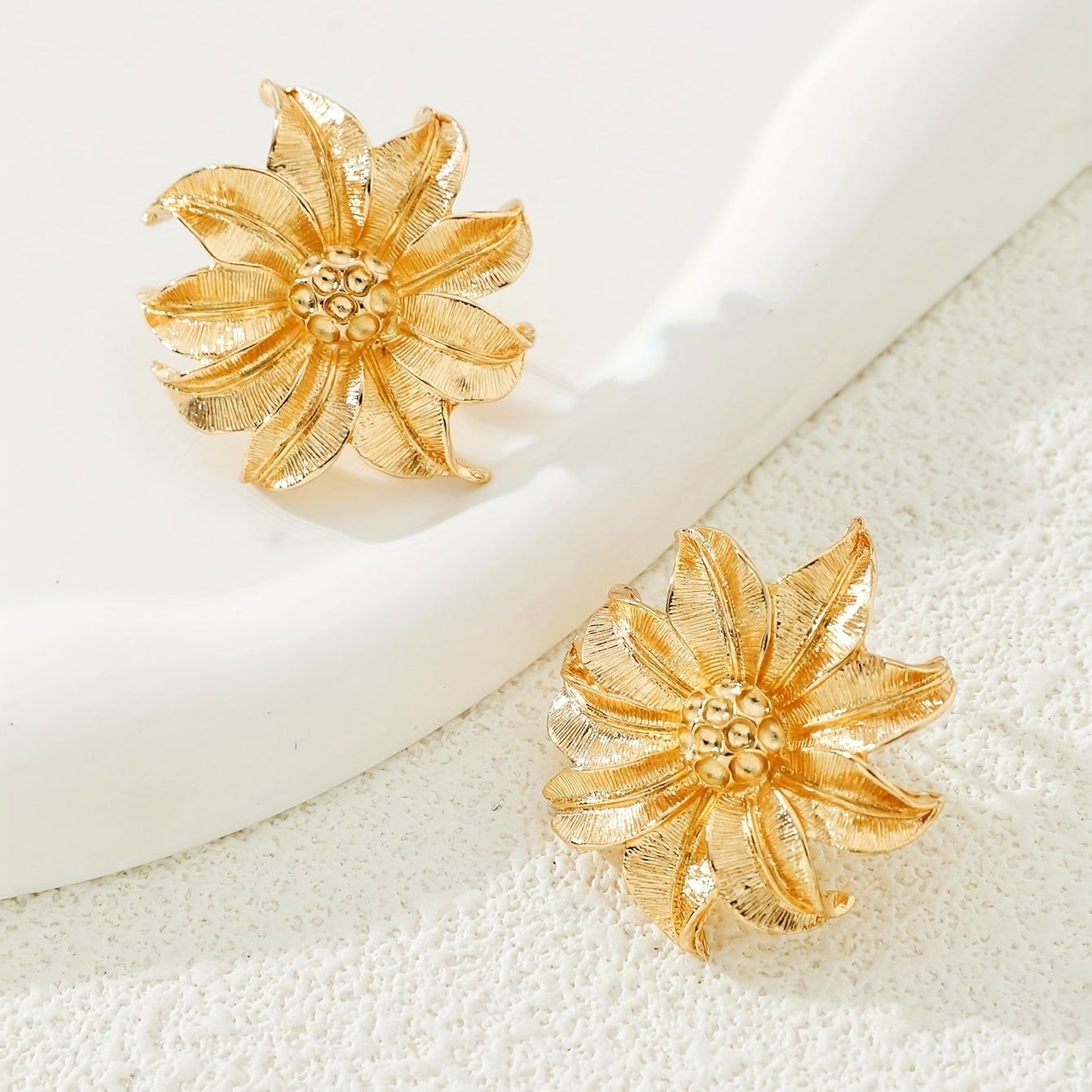 • Beautiful golden metal flower stud earrings
