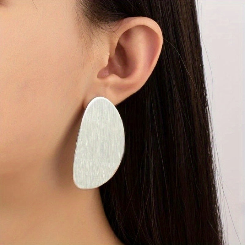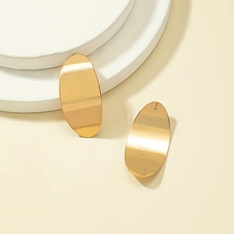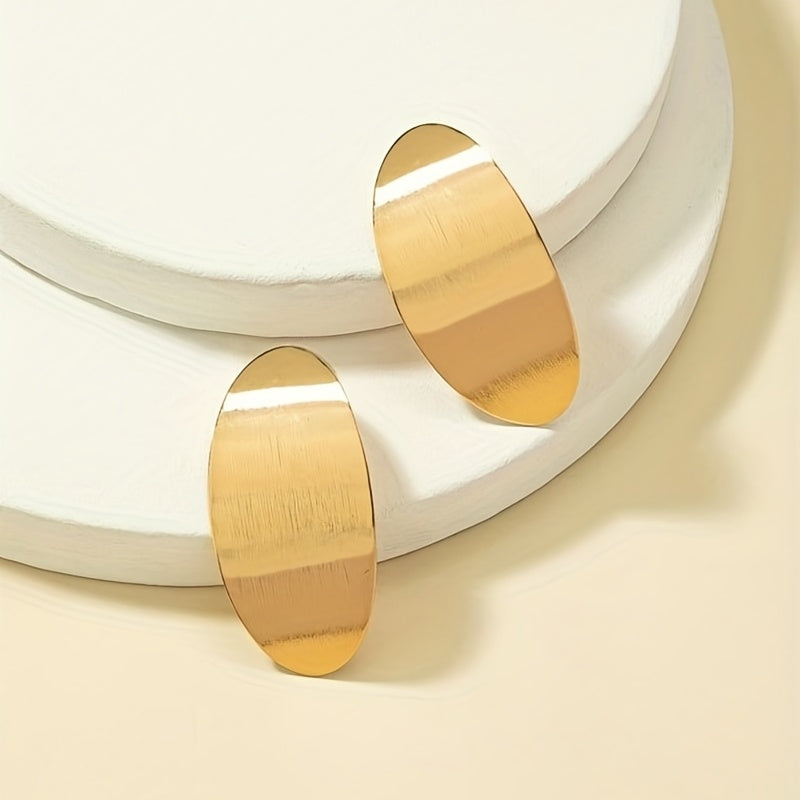 These stylish stud earrings feature an oval shape design with a golden and silvery finish. Perfect as a gift for women and girls.