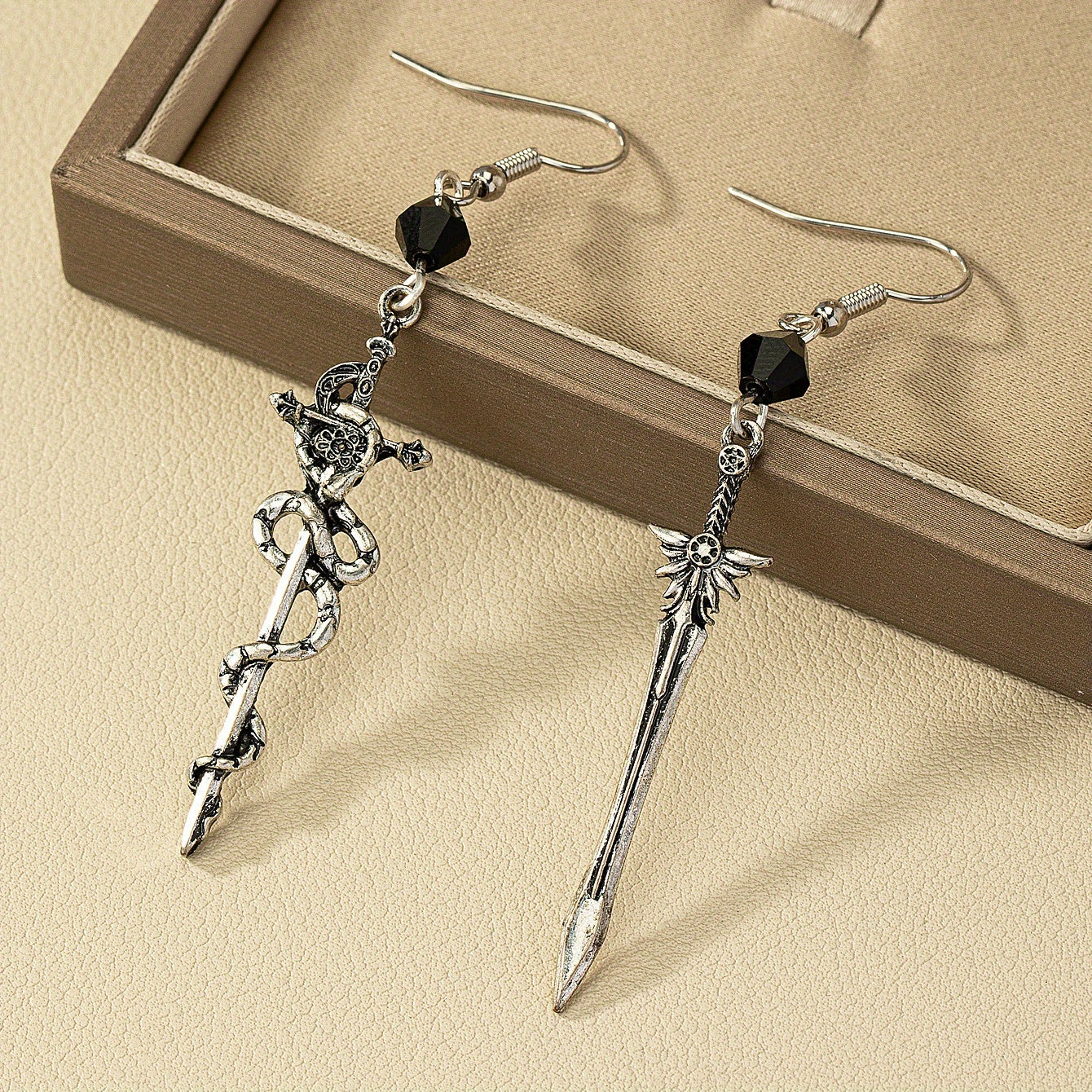 These Halloween-themed earrings feature a sword of victory design, making them a creative gift for women and girls. The Gothic-inspired dark pentagram and snake wrap design adds a touch of mystery and style to any outfit.