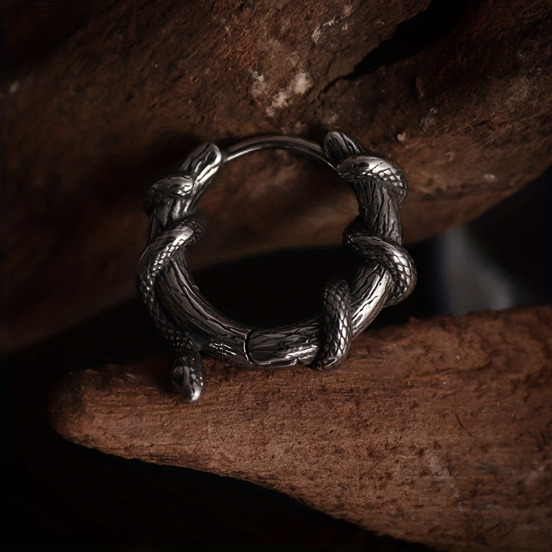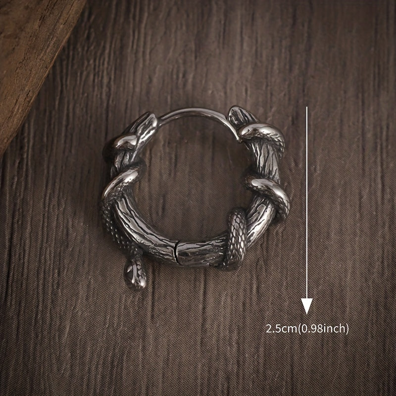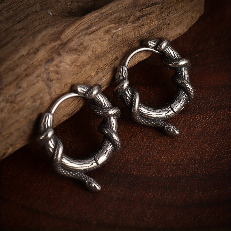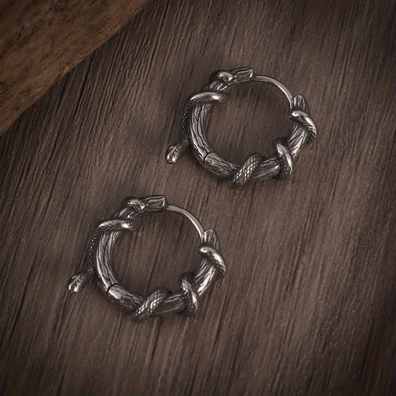 These earrings feature a gothic design with a snake twisted around plant vines, perfect for a punk, hip hop, or vintage look. They are ideal for parties or as a statement piece of jewelry.