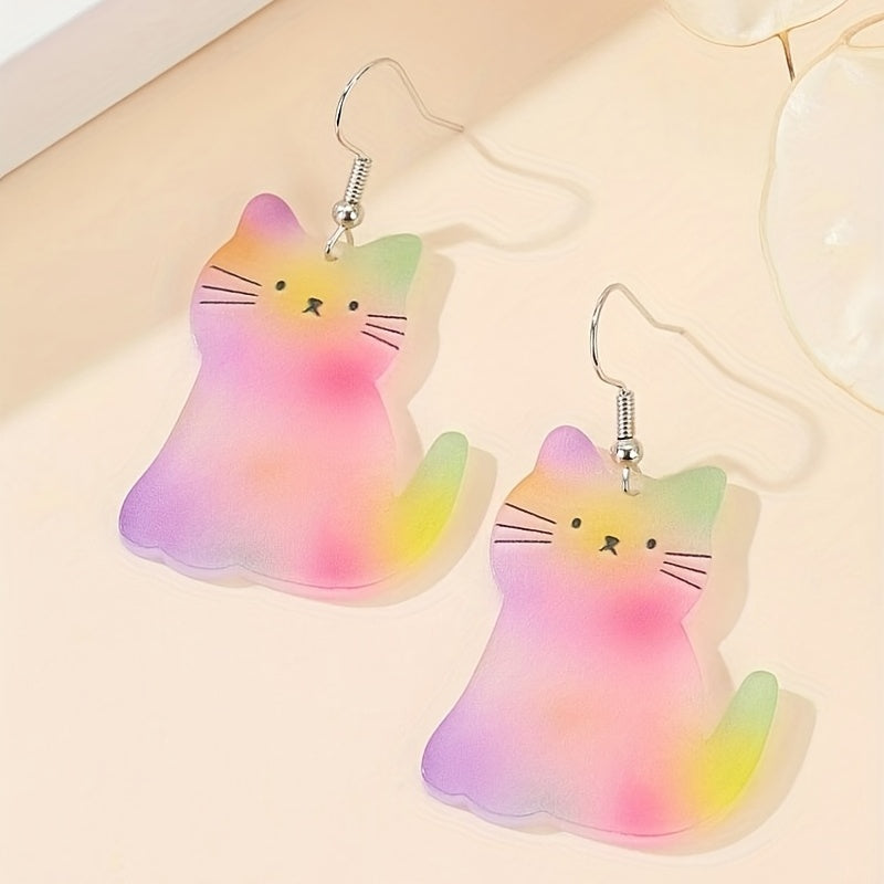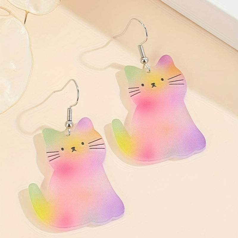 These adorable gradient cat resinous hook earrings are perfect for women and girls to wear daily for a casual look.