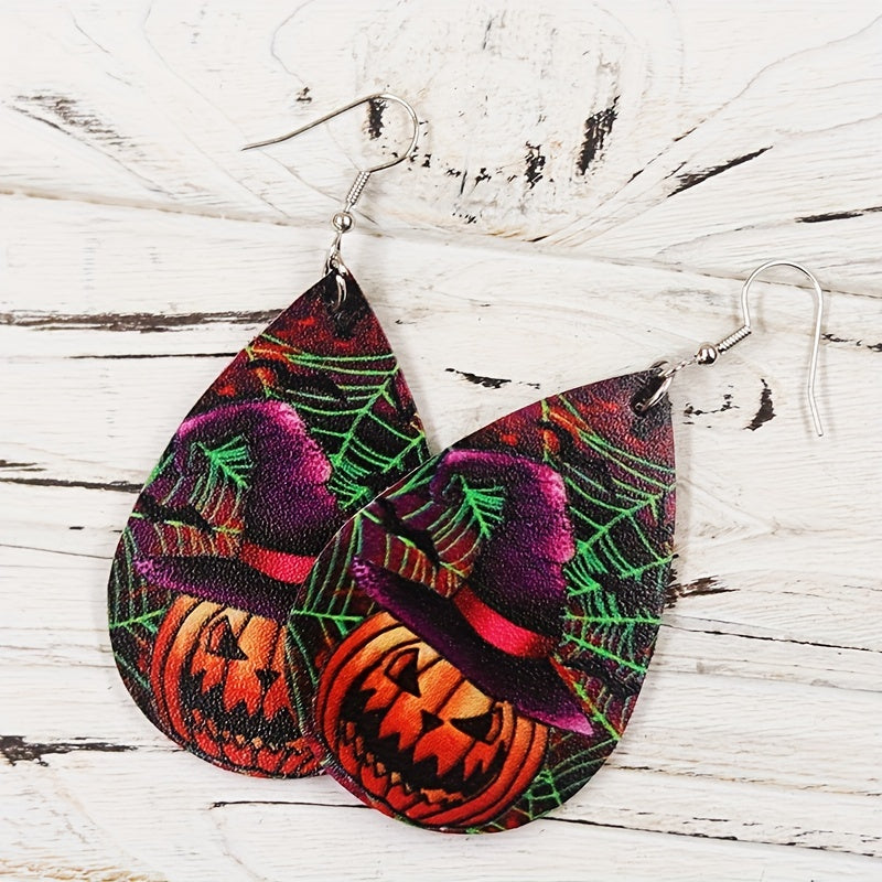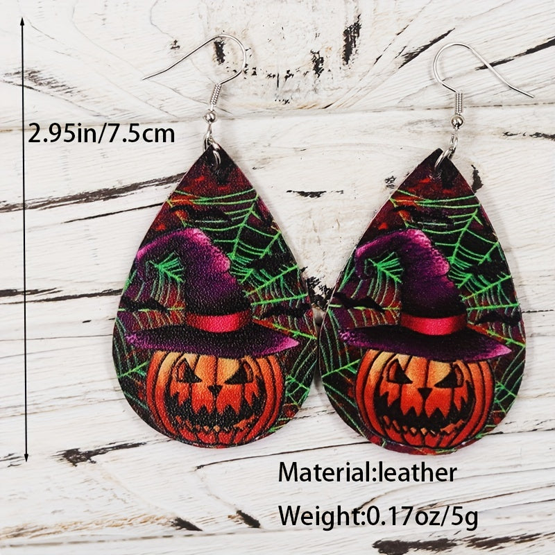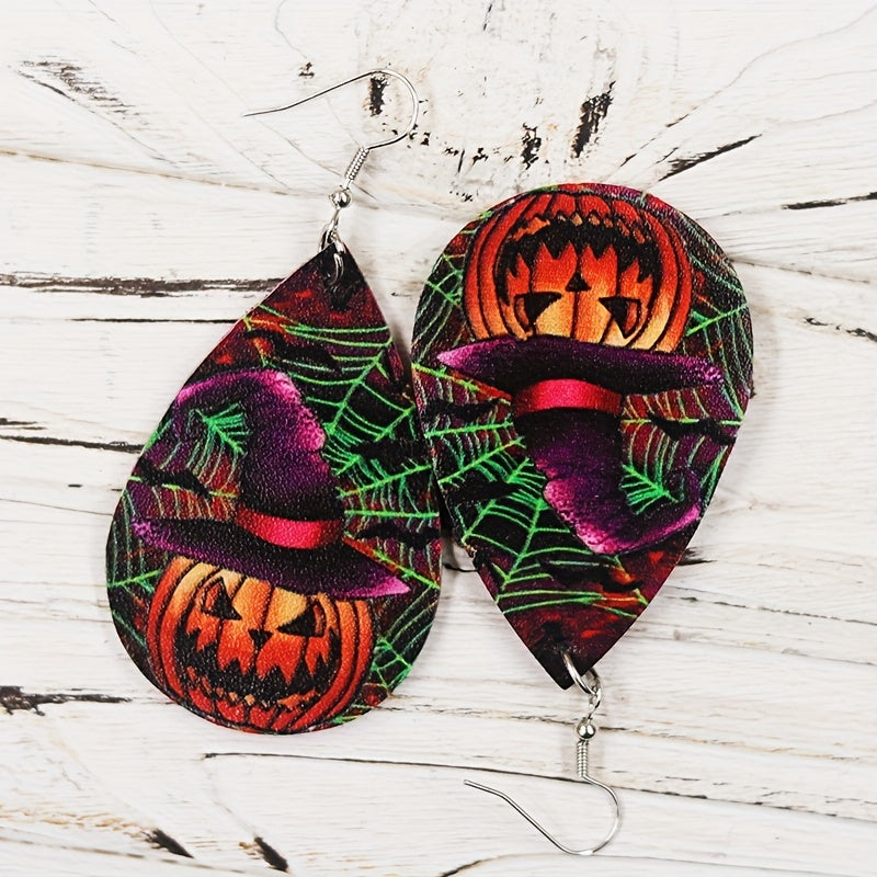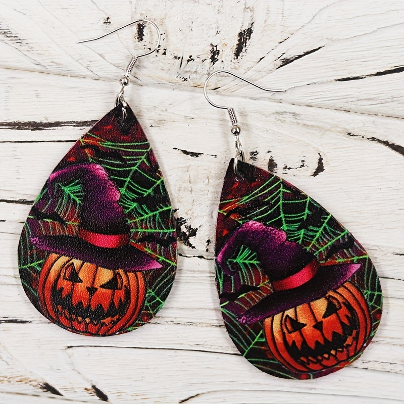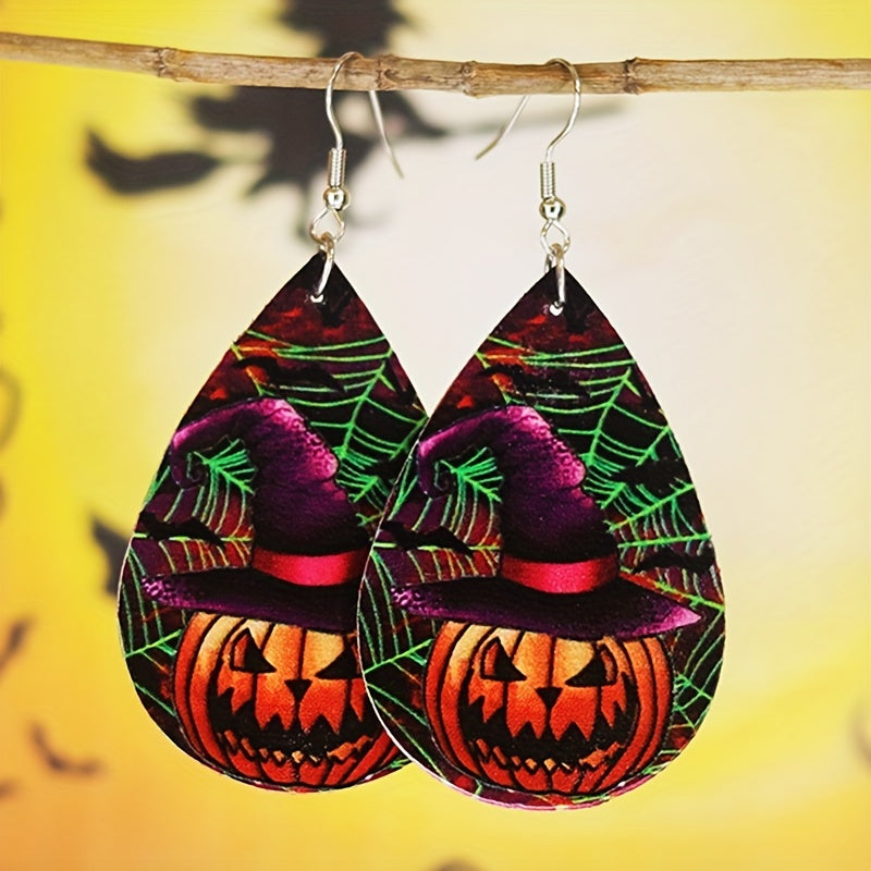 These spooky teardrop earrings feature a Halloween-themed design of pumpkins and spider webs. Perfect for adding a vocation style touch to your outfit, and makes a great gift for females.