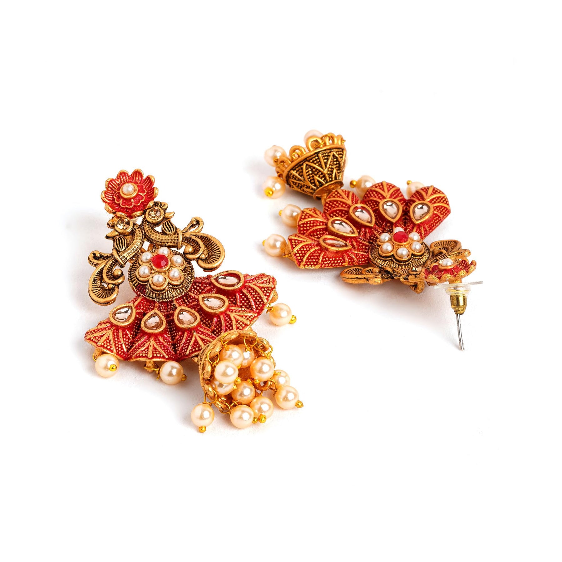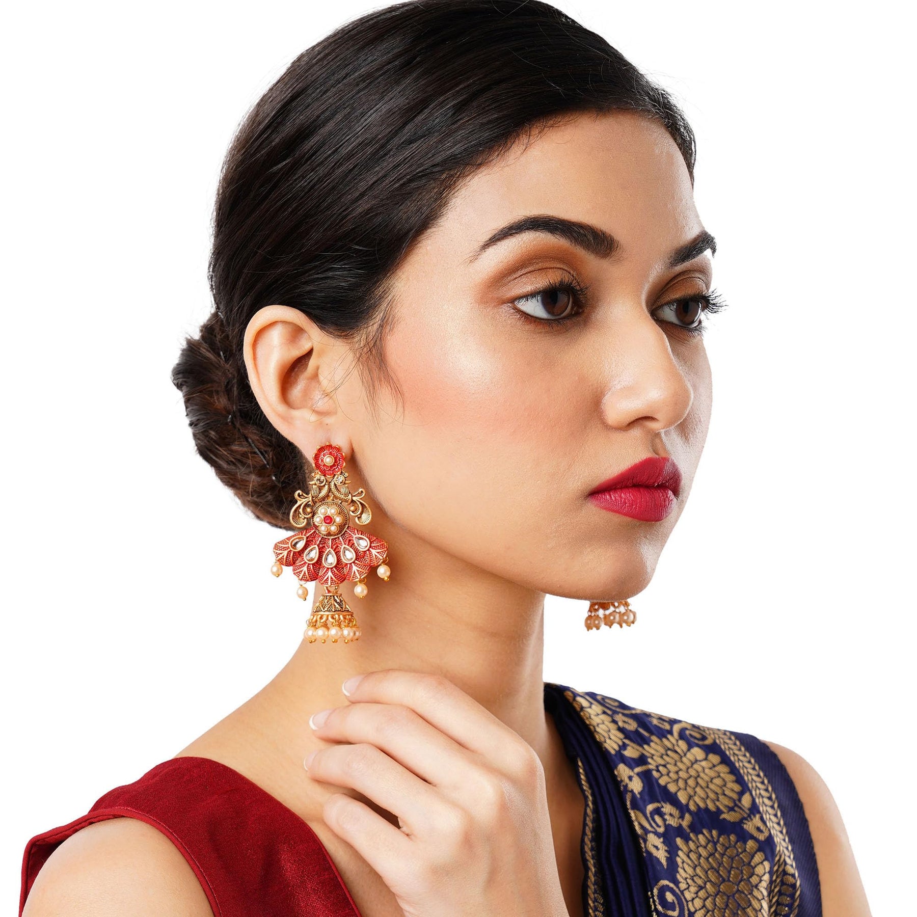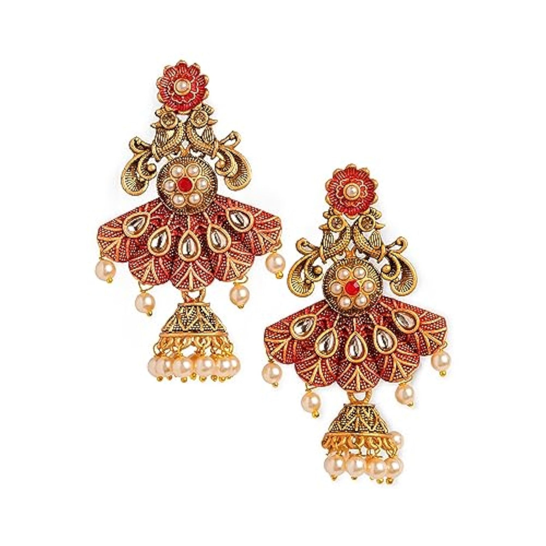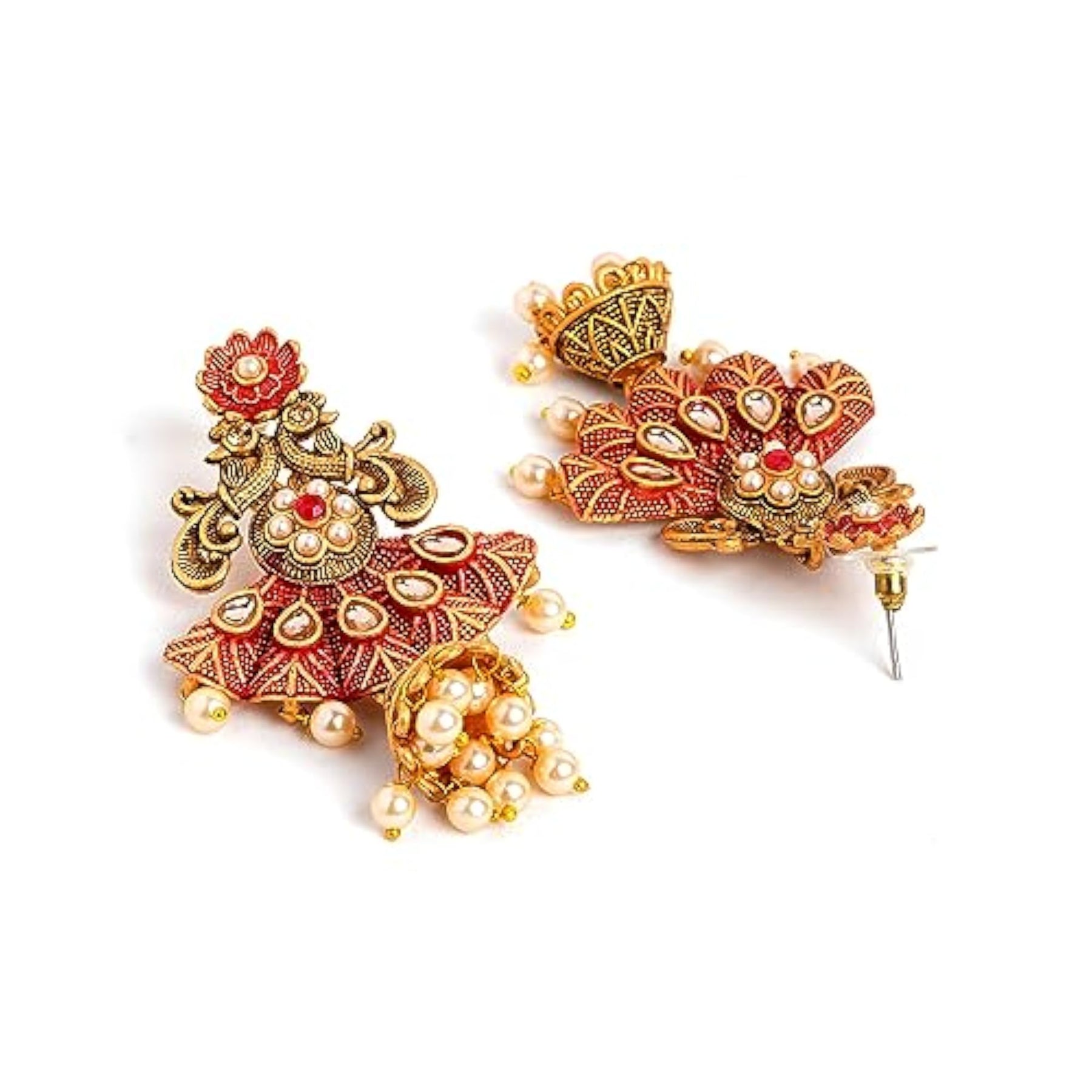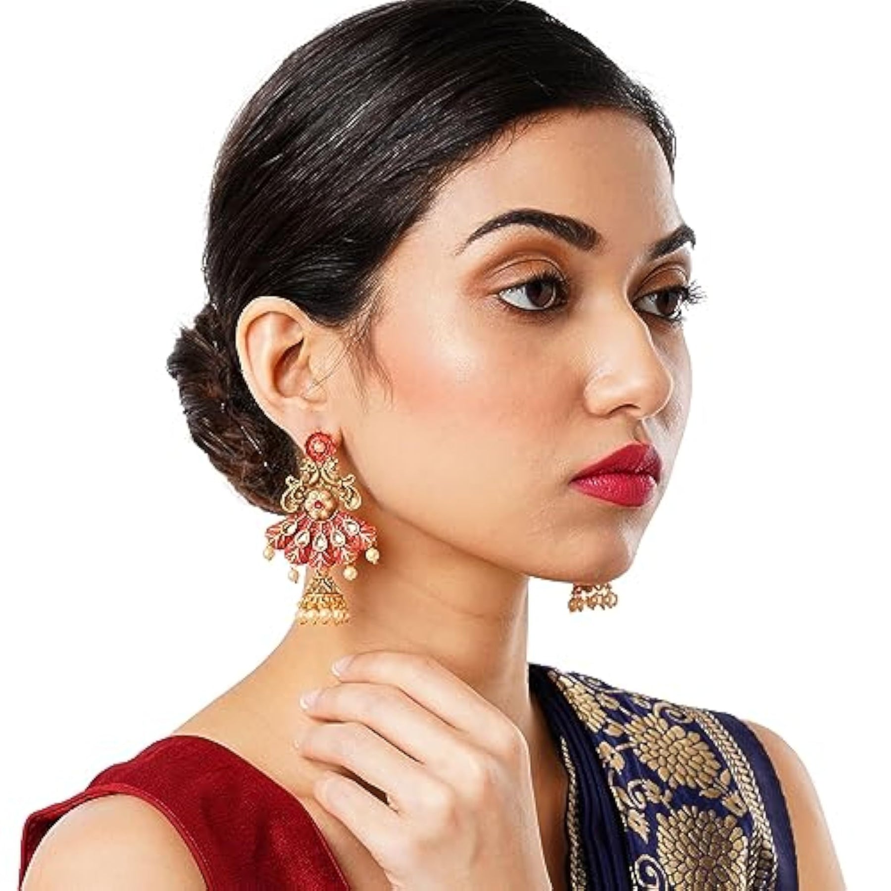 Upgrade your style with these statement ethnic earrings featuring intricate detailing.