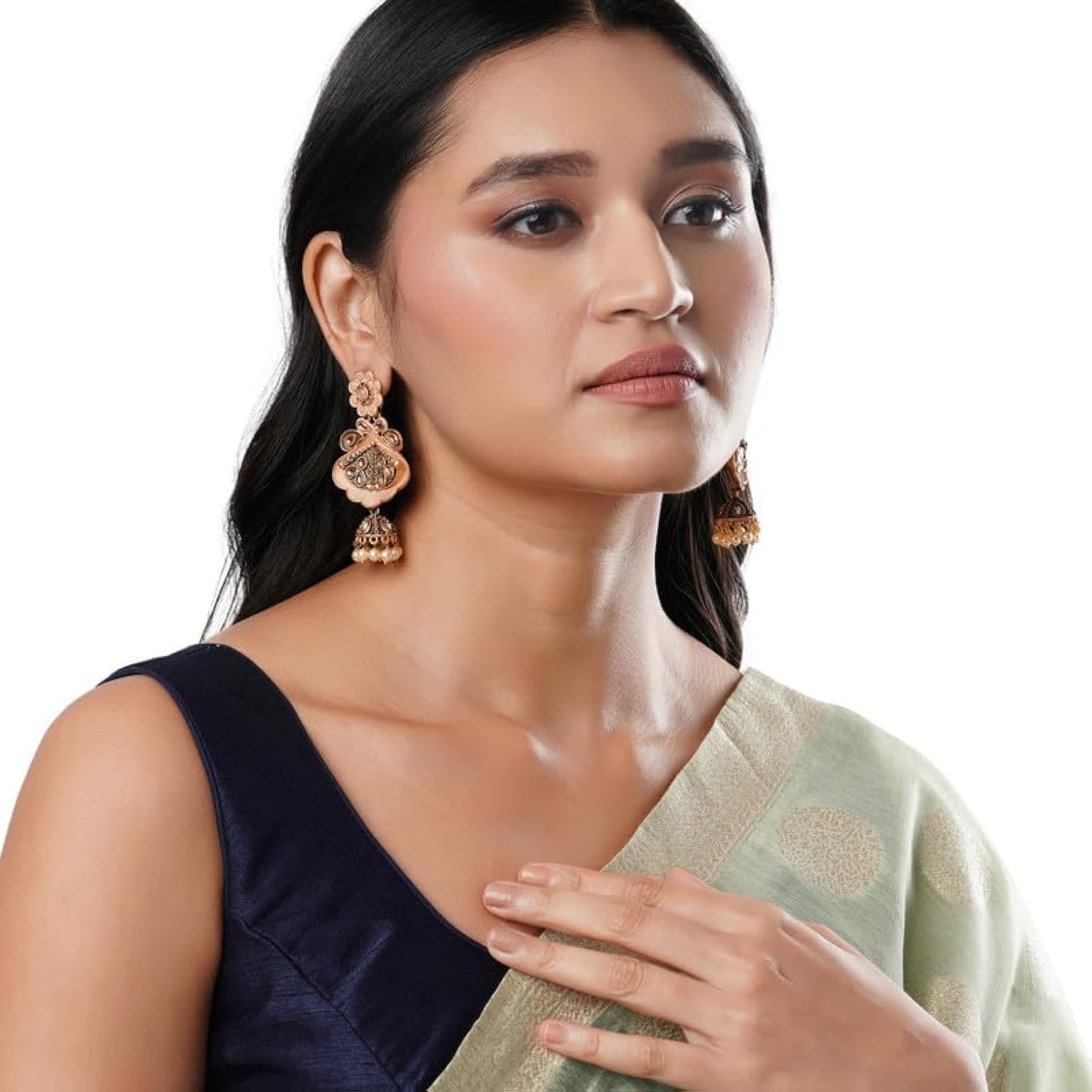 These statement earrings are handcrafted with intricate detailing, offering a touch of cultural elegance to your look.