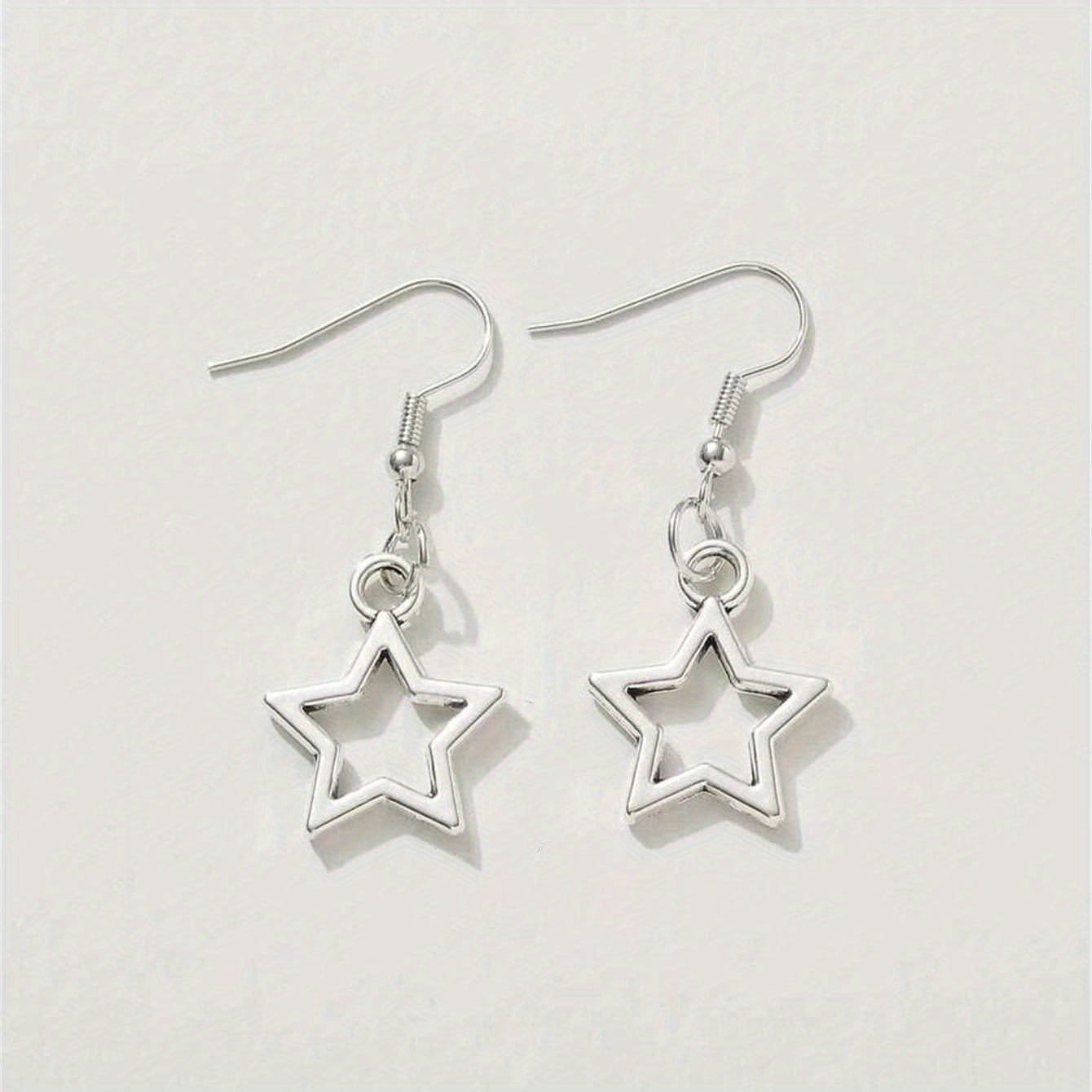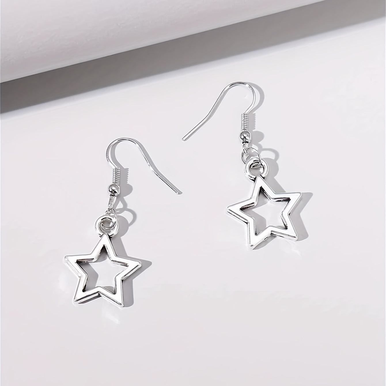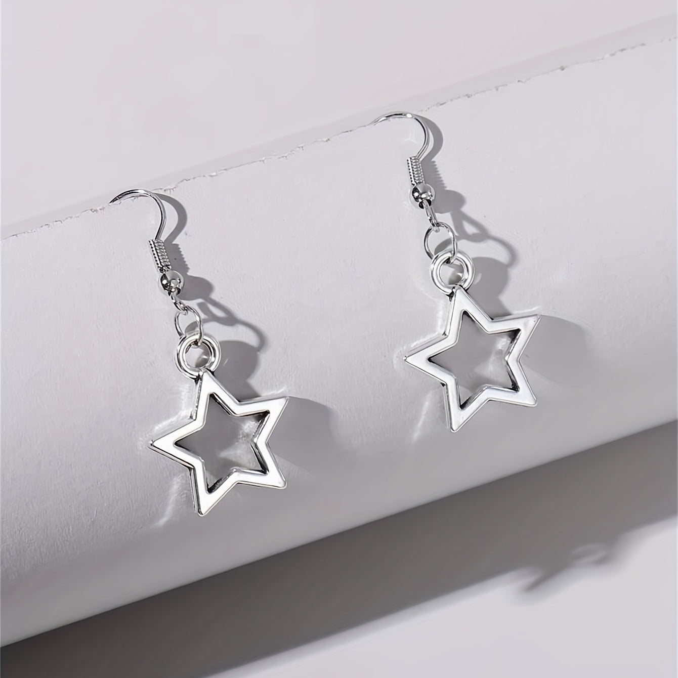 Hollow Pentagram Long Dangle Earrings Retro Y2K Style Zinc Alloy Jewelry