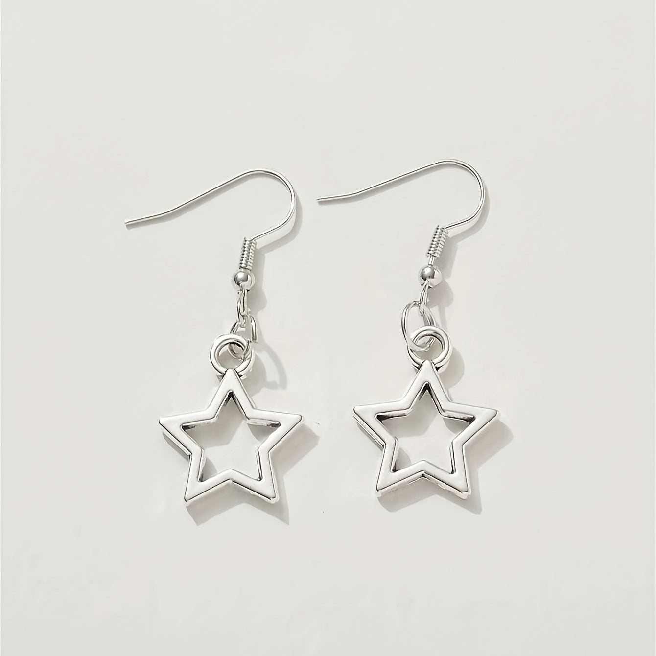 These long dangle earrings feature a retro Y2K style with a hollow pentagram design. Made of zinc alloy, these delicate earrings make a perfect gift for females.