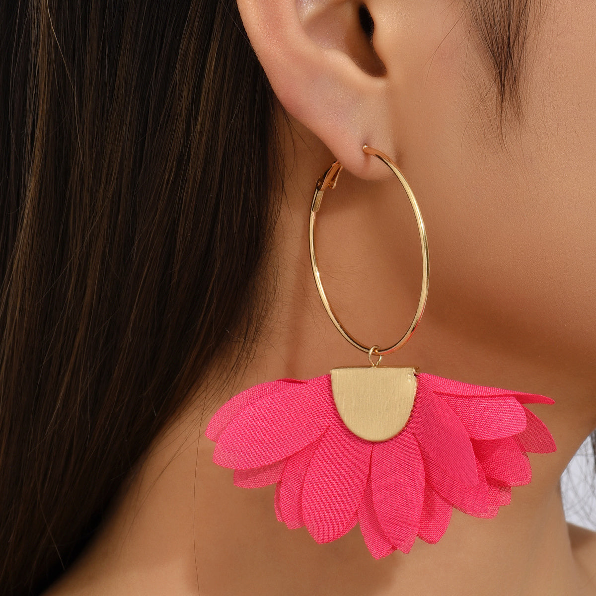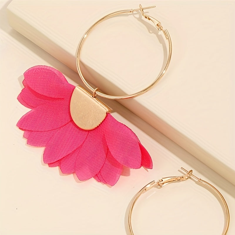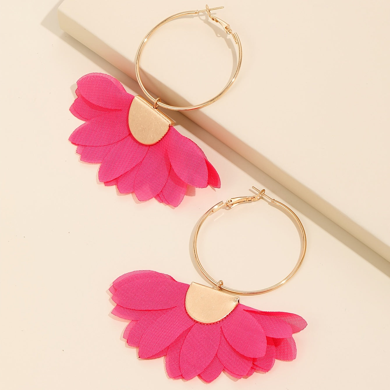 Hot Pink Flower Petal Decor Hoop Earrings Vocation Style
