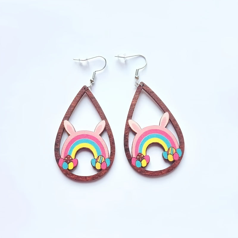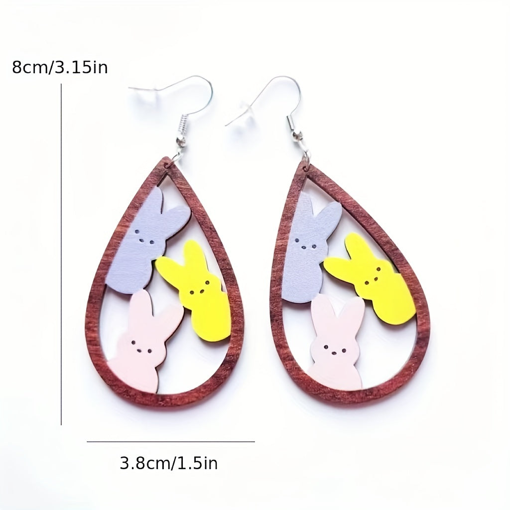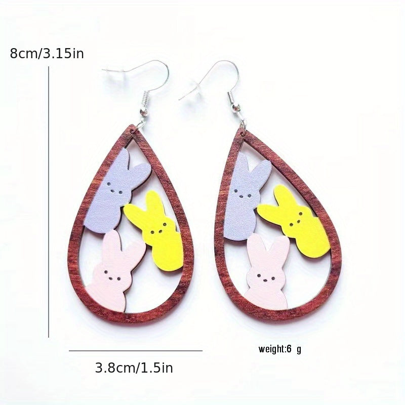 These Easter water drop shaped hollow earrings feature leopard rabbit and chicken designs, making them a fun and festive accessory. Perfect for celebrating Easter with style.