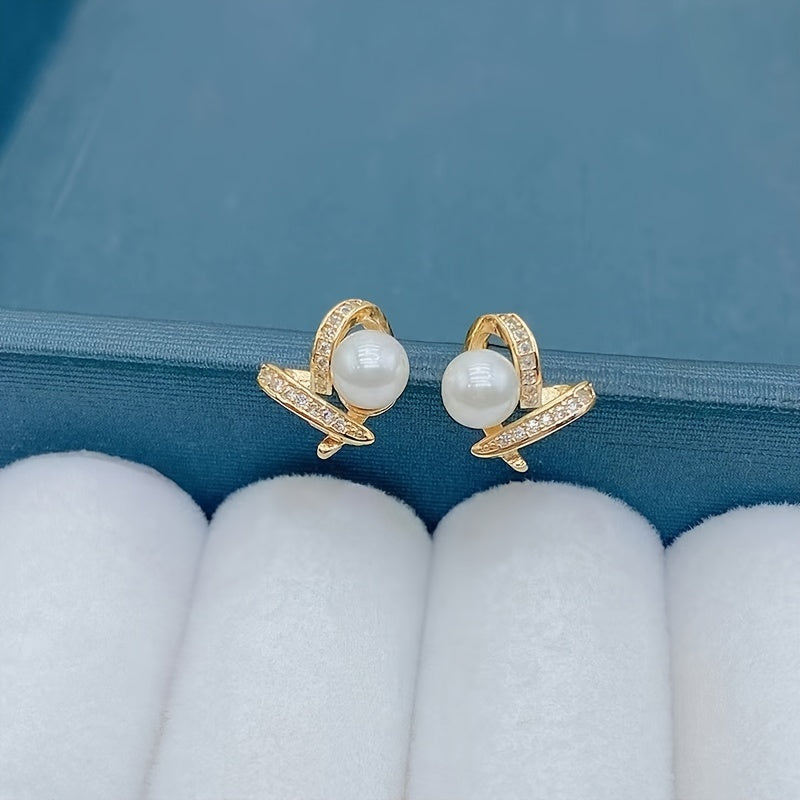 These elegant stud earrings feature love heart design with faux pearls, adding a touch of sophistication to any outfit. Perfect as a gift for a loved one or yourself.