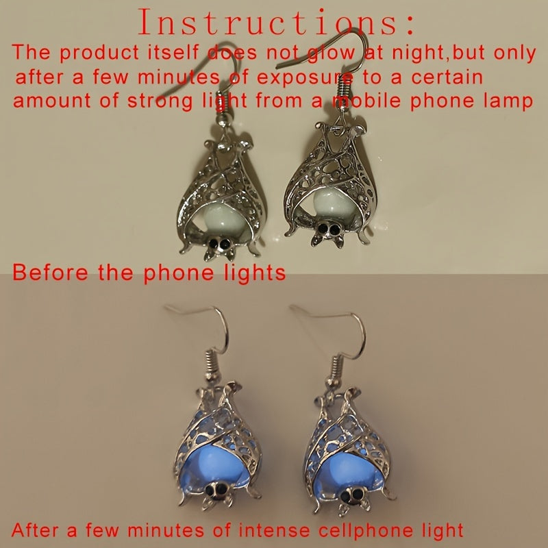 These Hollow Luminous Bat Earrings are perfect for parties and add a touch of punk style to your outfit.