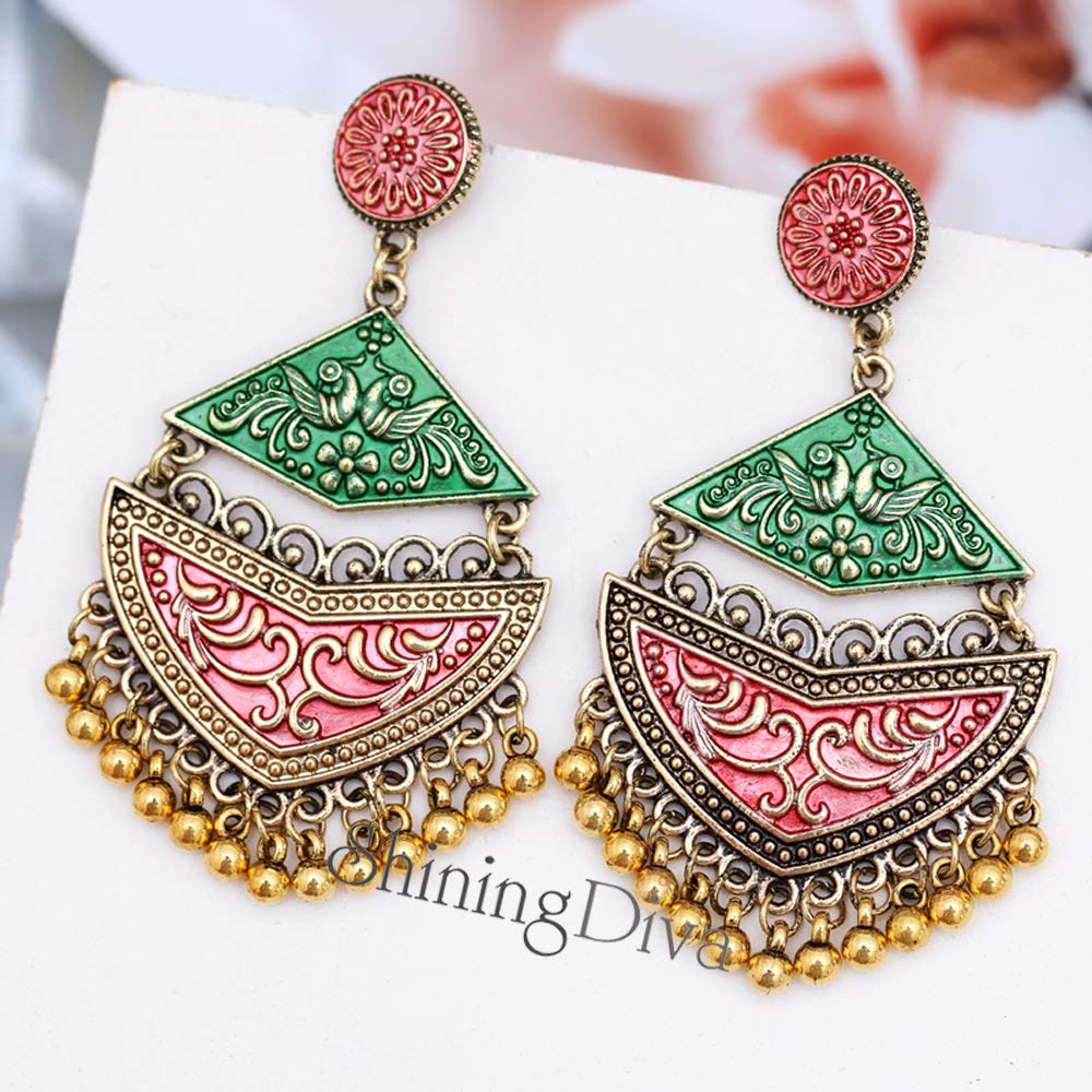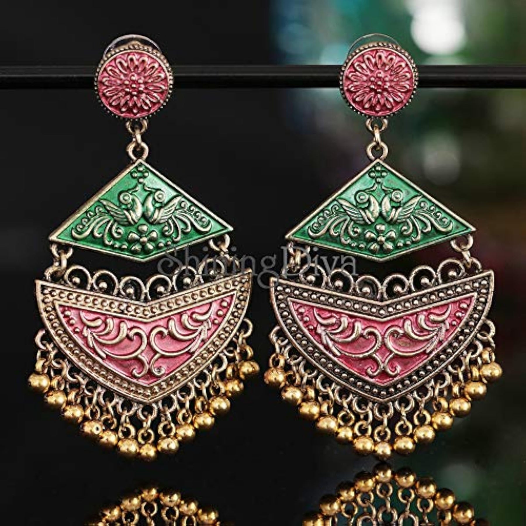 Add a touch of elegance to your look with these beautiful Meenakari traditional antique earrings. Perfect for all occasions.