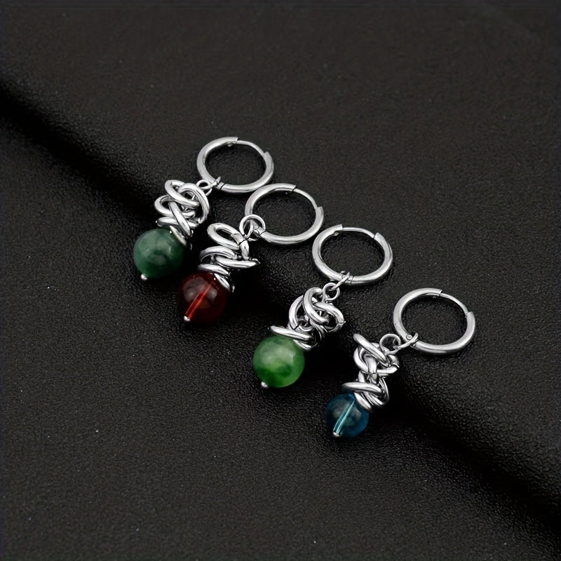 Upgrade your style with these vibrant bead earrings. Made of high-quality stainless steel, these unisex earrings are a bold fashion statement.