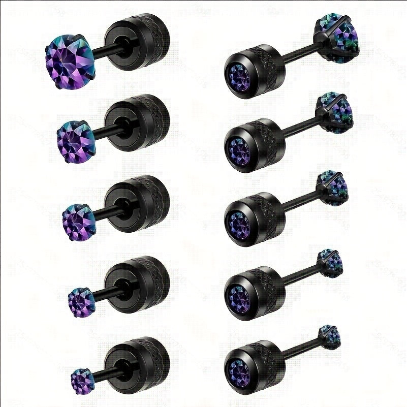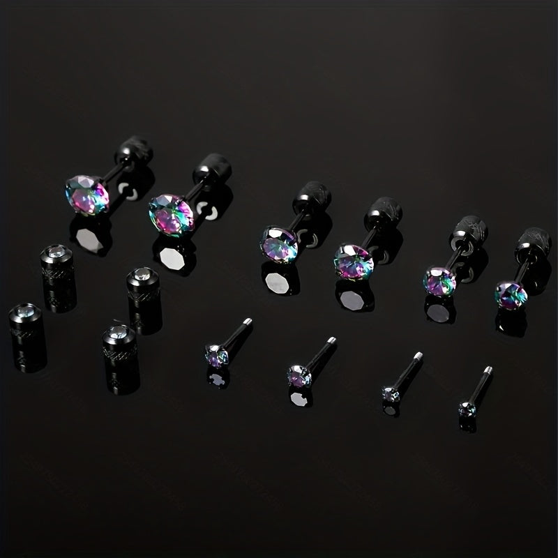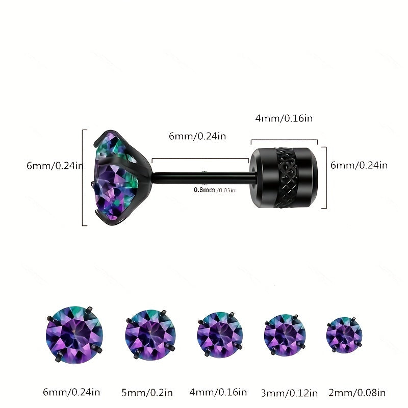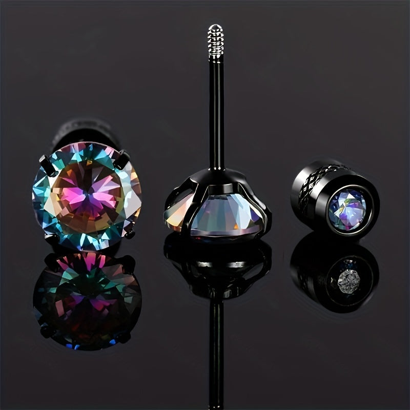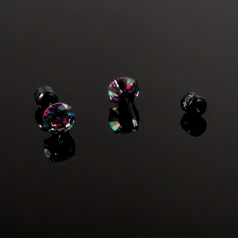 Men's Colorful Double Diamond Zircon Stud Earrings Titanium Steel